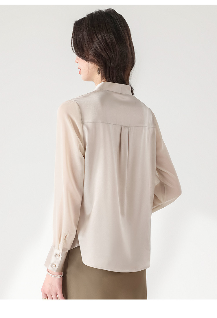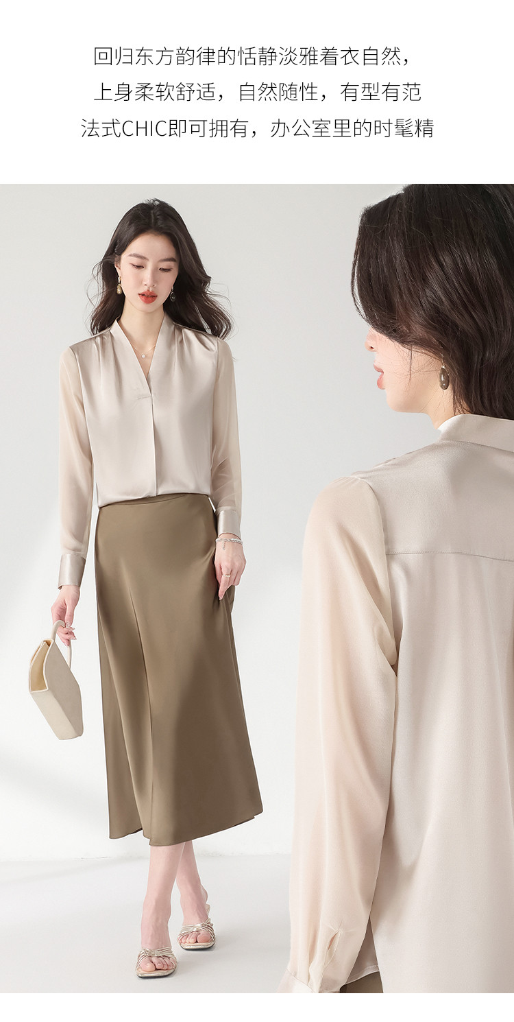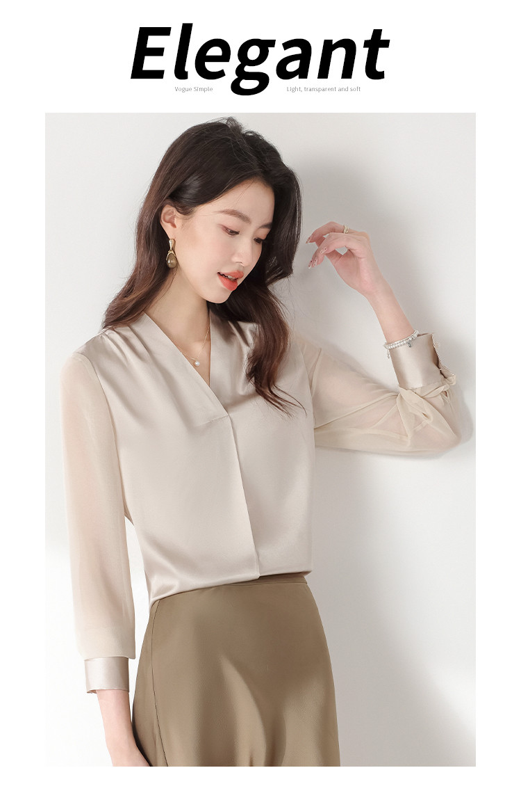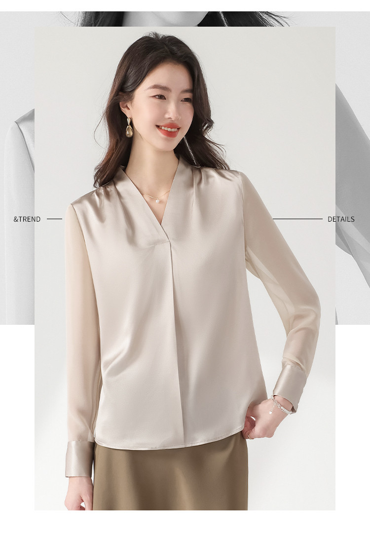 商品名称:【桑蚕丝】V领纯色桑蚕丝衬衣舒适休闲长袖女式衬衫气质夏款上衣 421331
