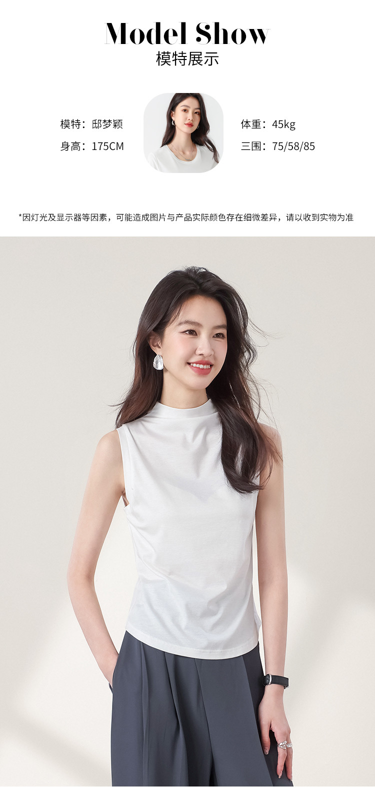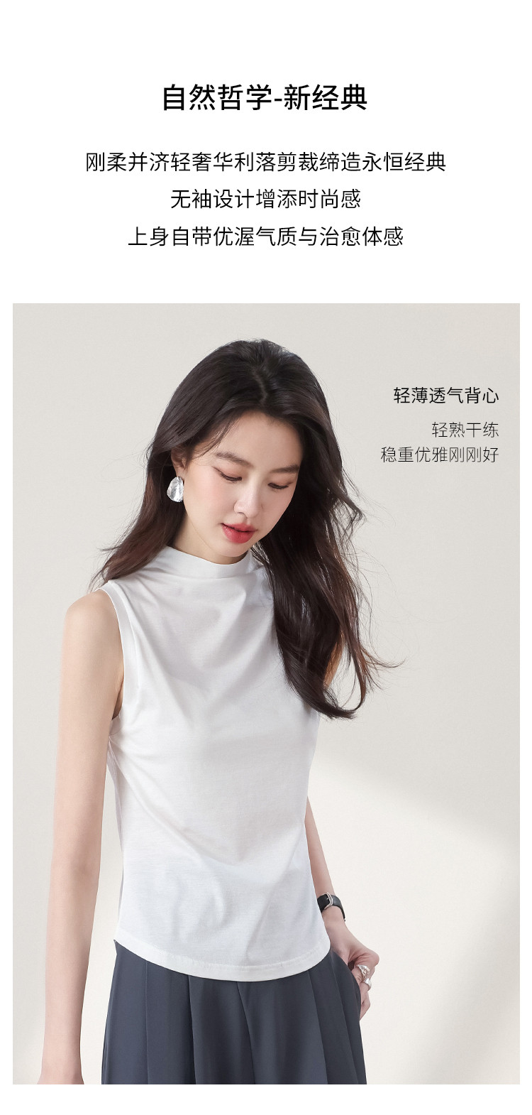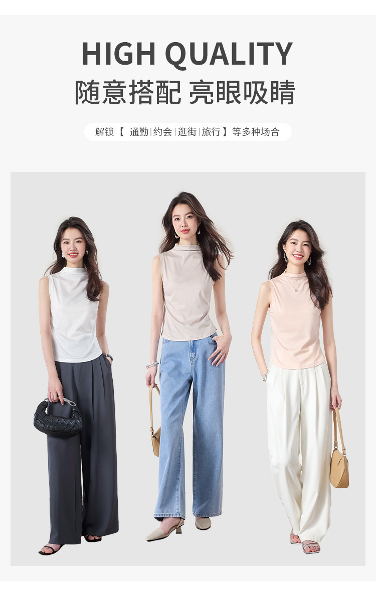 商品名称:【含桑蚕丝】春夏透气百搭纯色无袖T恤休闲简约百搭薄款女式背心 362323