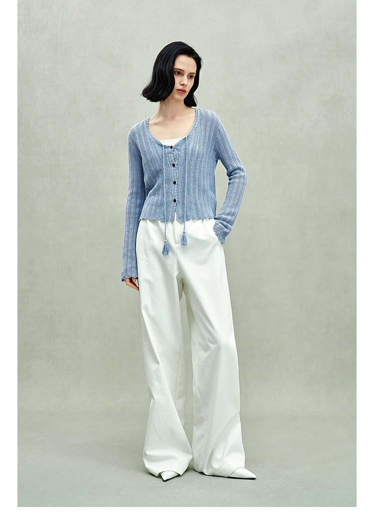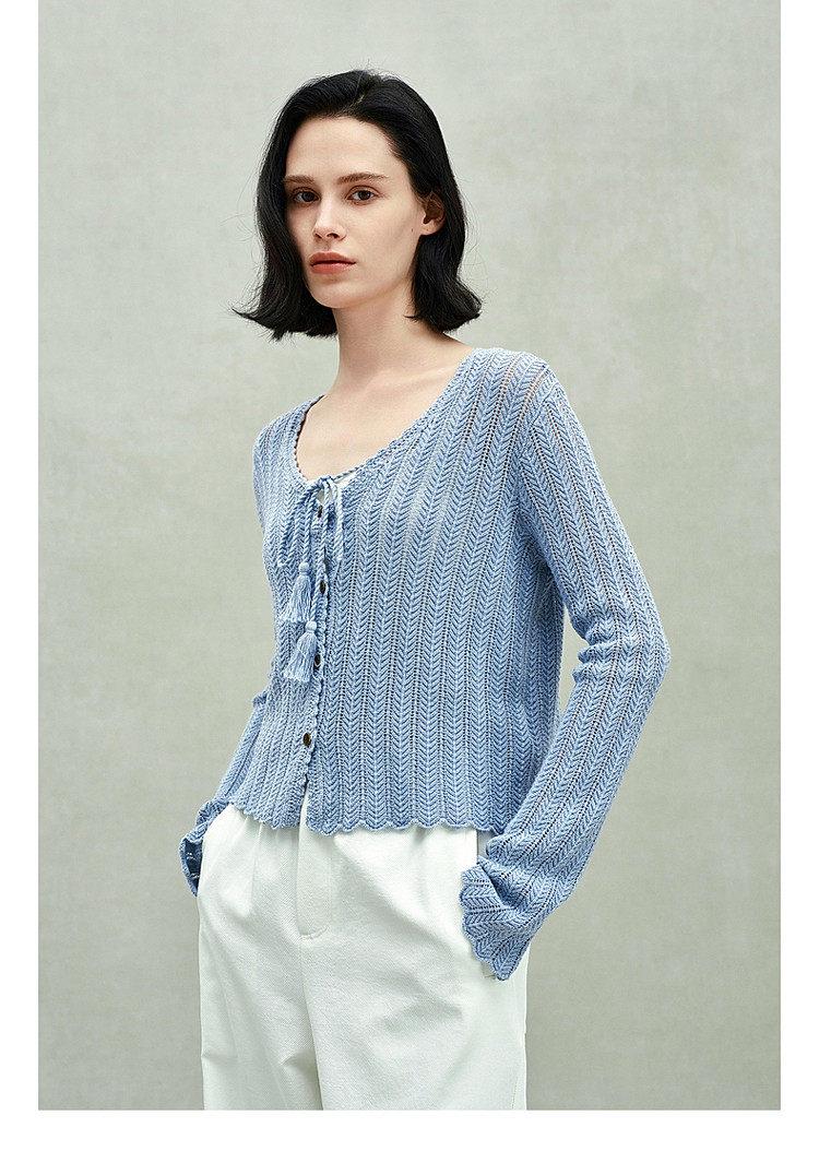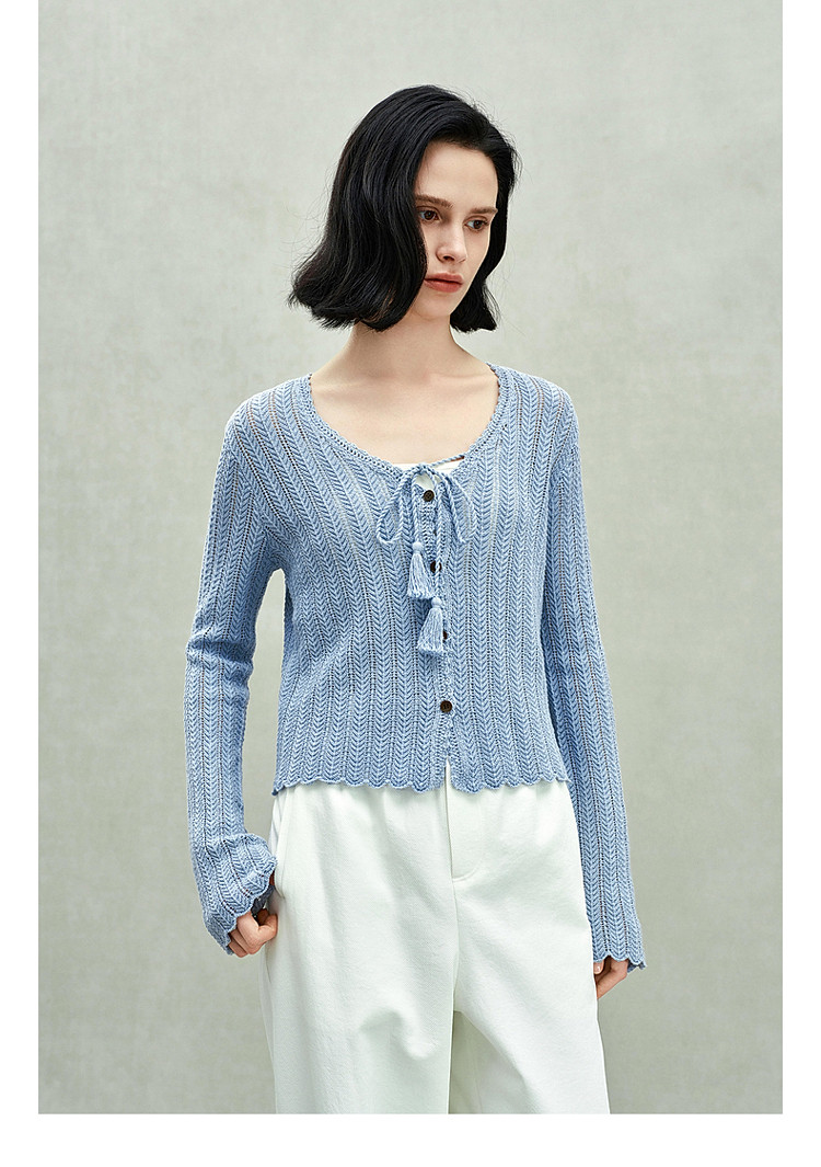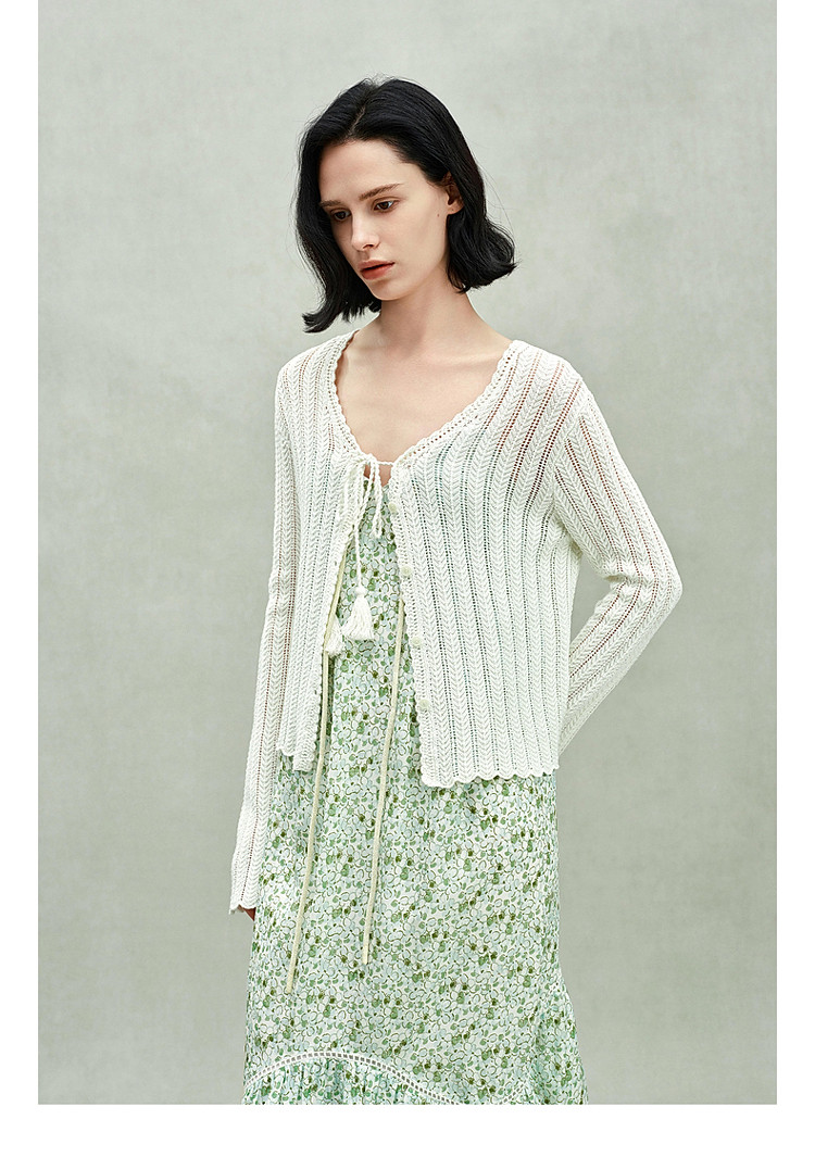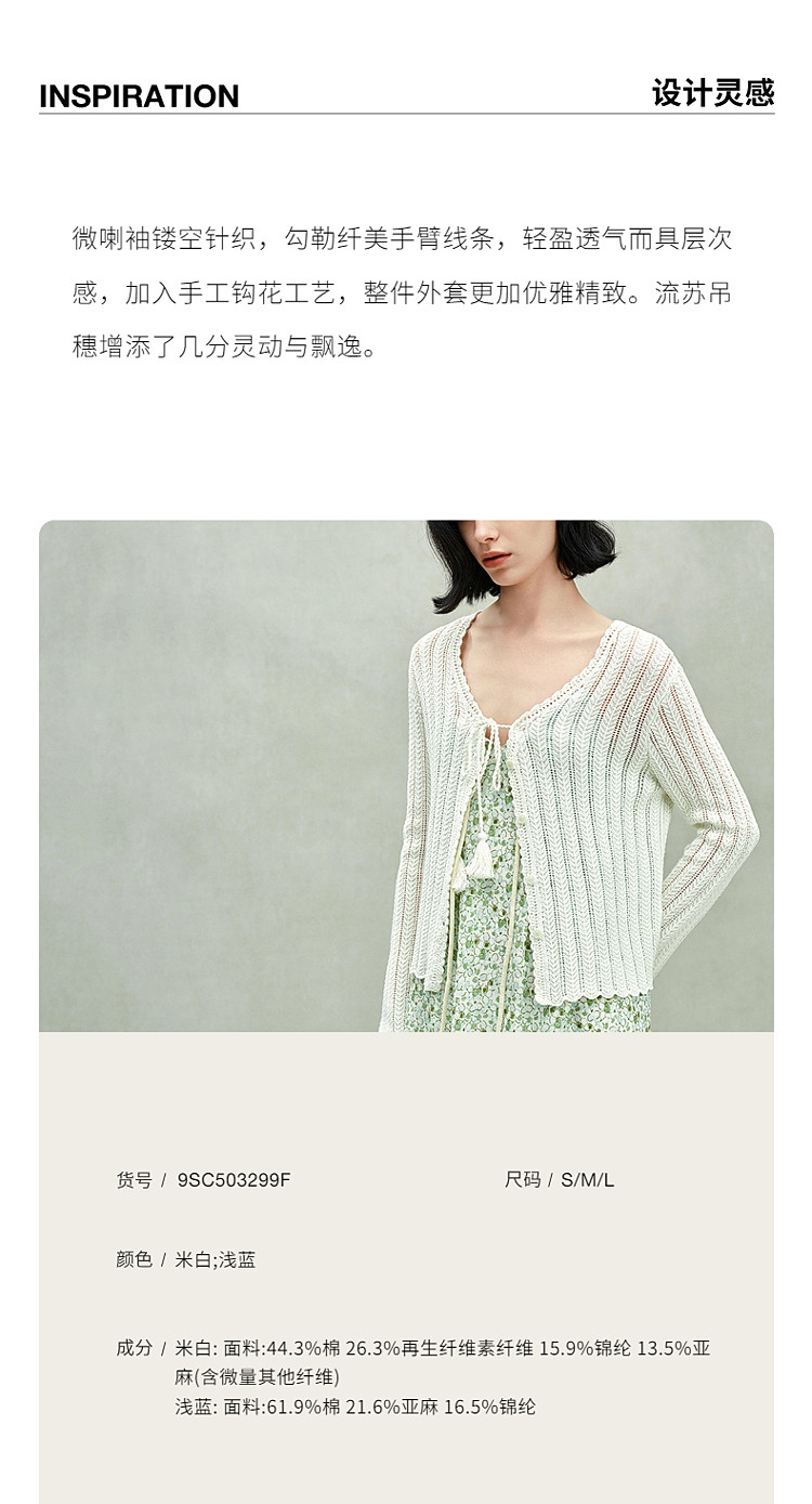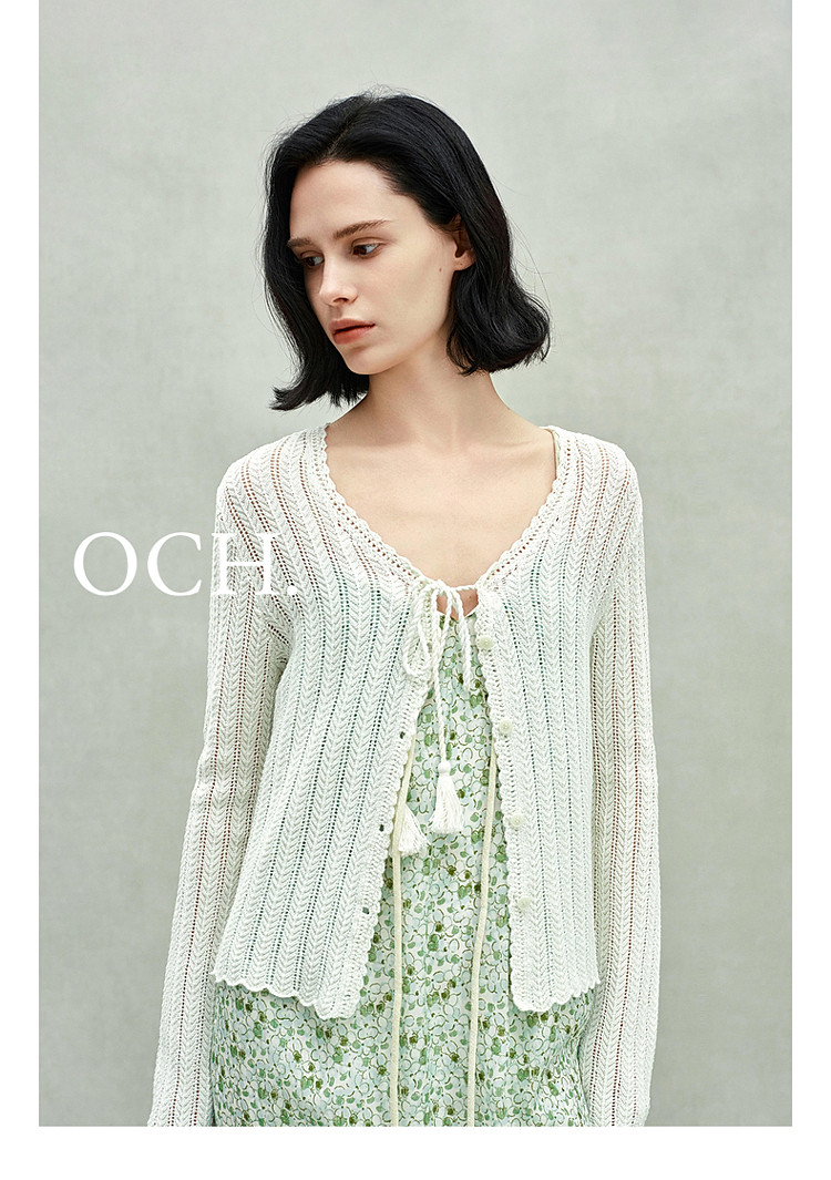 限定系列OCH.春装 新疆棉镂空钩花开衫系带针织外套女 524879