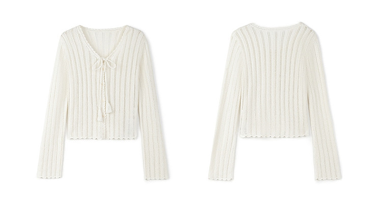 商品名称:限定系列OCH.春装 新疆棉镂空钩花开衫系带针织外套女 524879