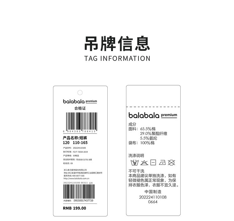 商品名称:【premium】巴拉巴拉高端线夏自然系列针织撞色绣花中裤男 656389