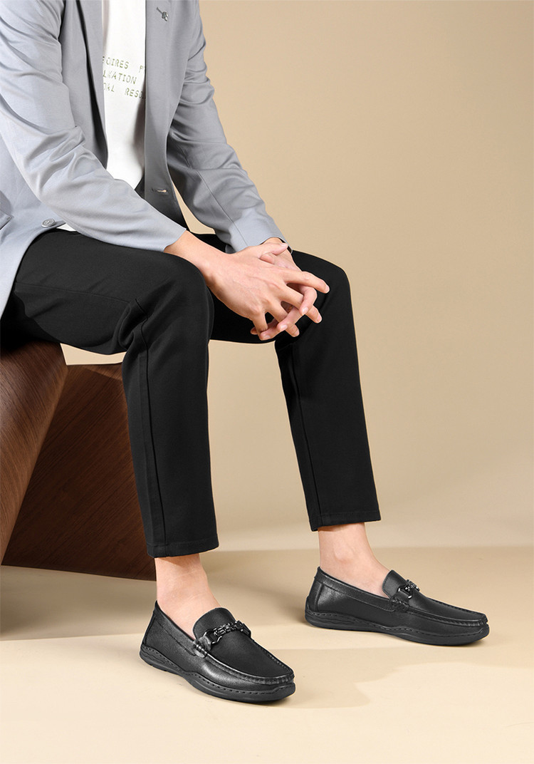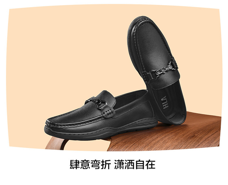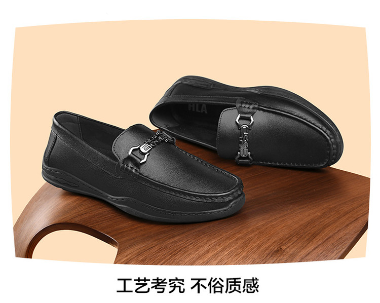 【头层牛革】男皮鞋真皮简约乐福套脚休闲皮鞋一脚蹬皮鞋黑色皮鞋 062287