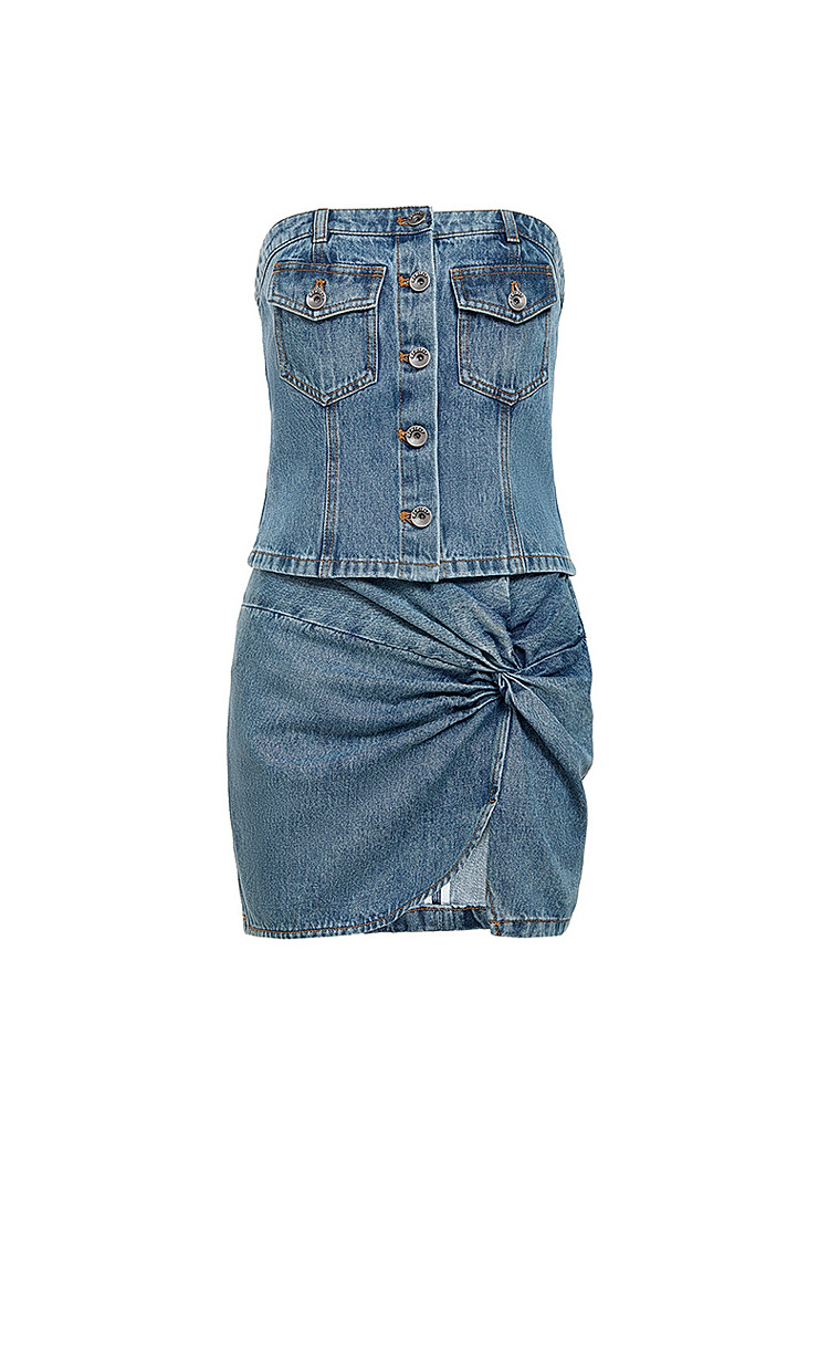 商品名称:春装褶饰短款露肩设计感抹胸牛仔套裙女 905039