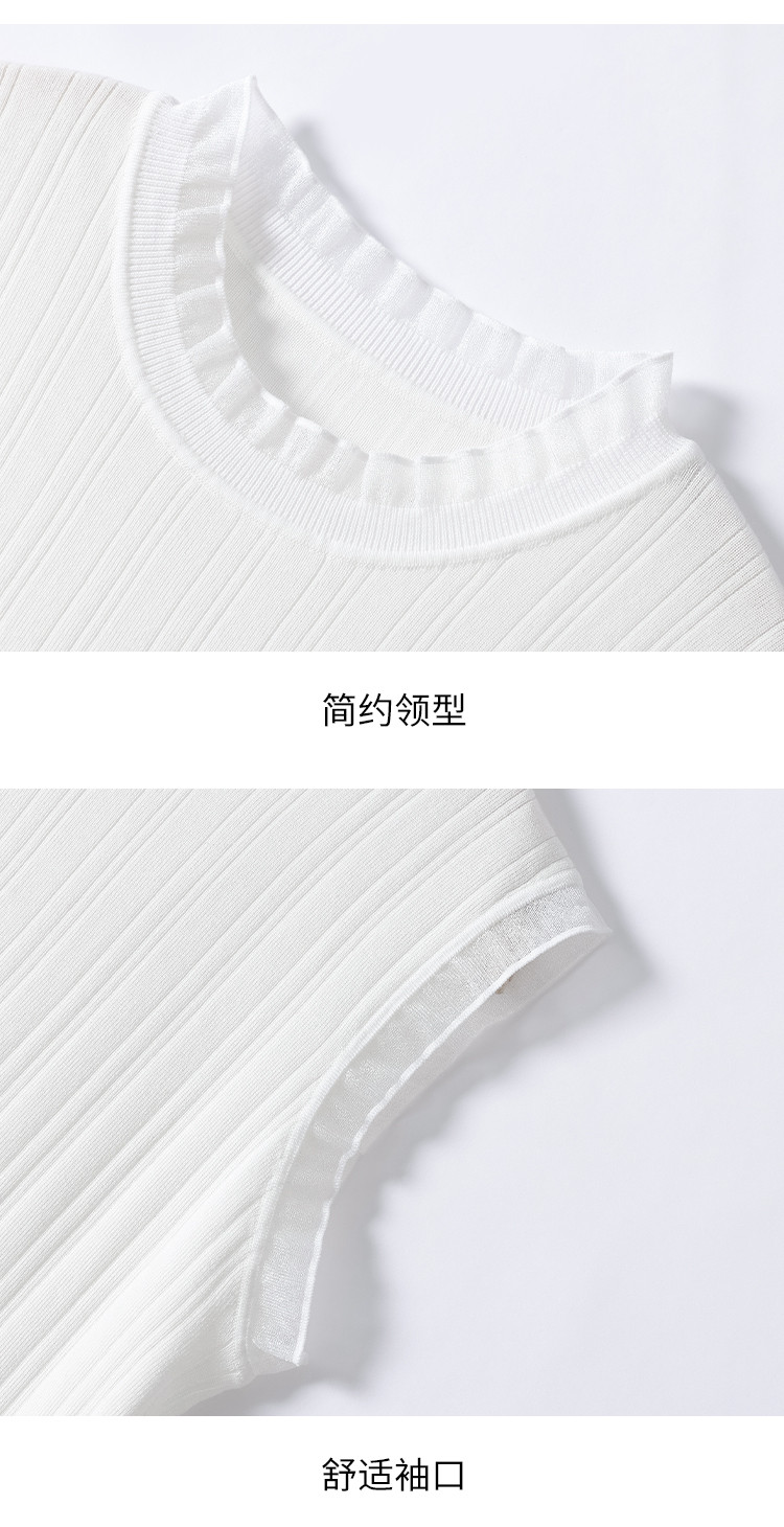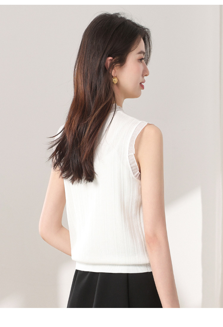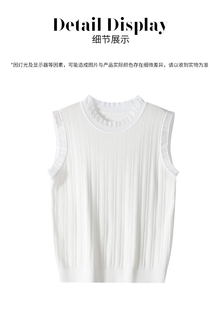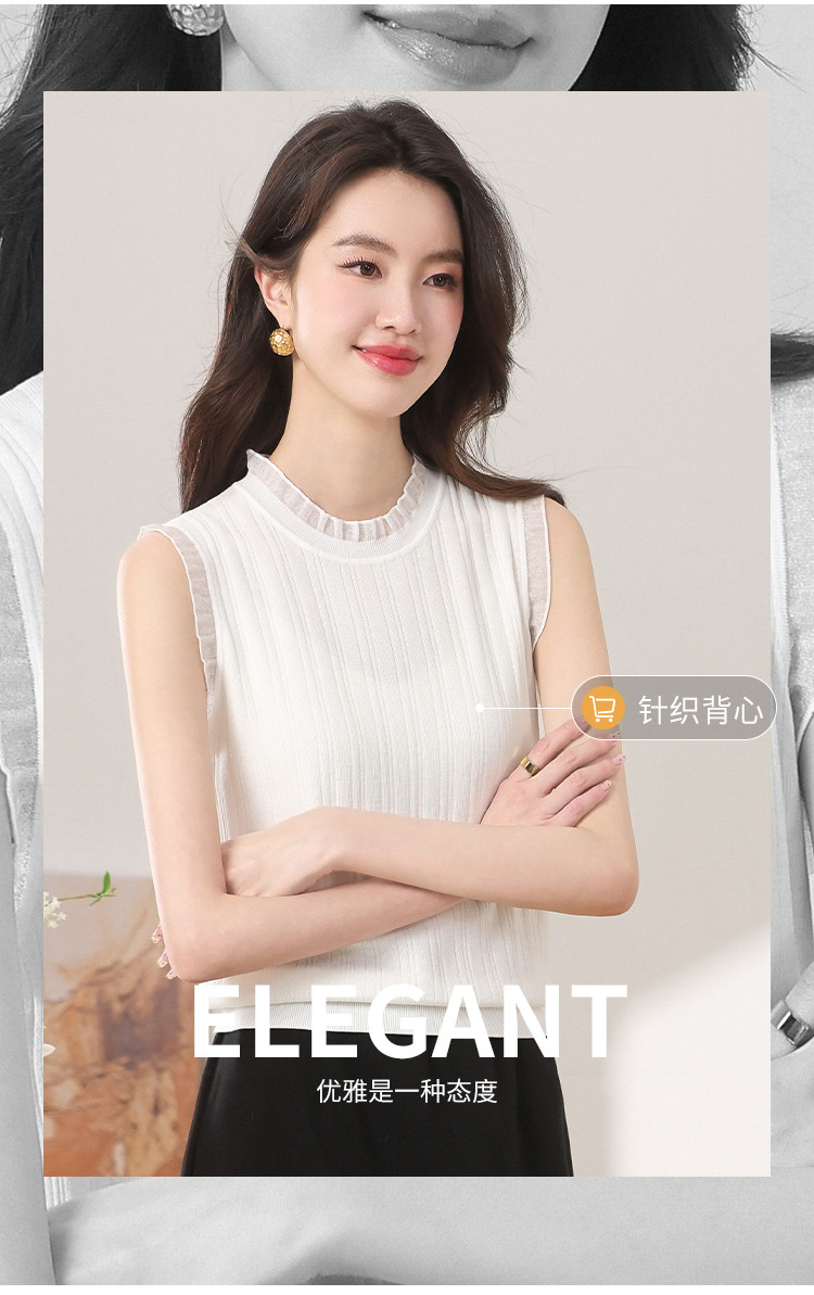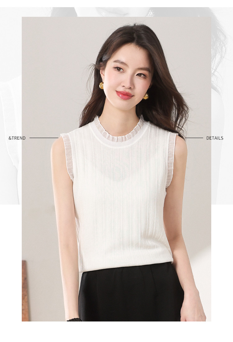 商品名称:【含桑蚕丝】蕾丝边抽条简约无袖T恤春夏显瘦针织衫女背心马甲 495571