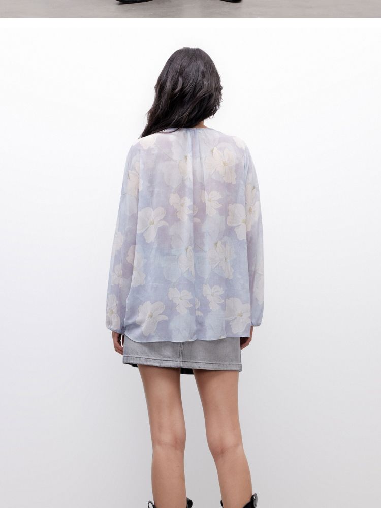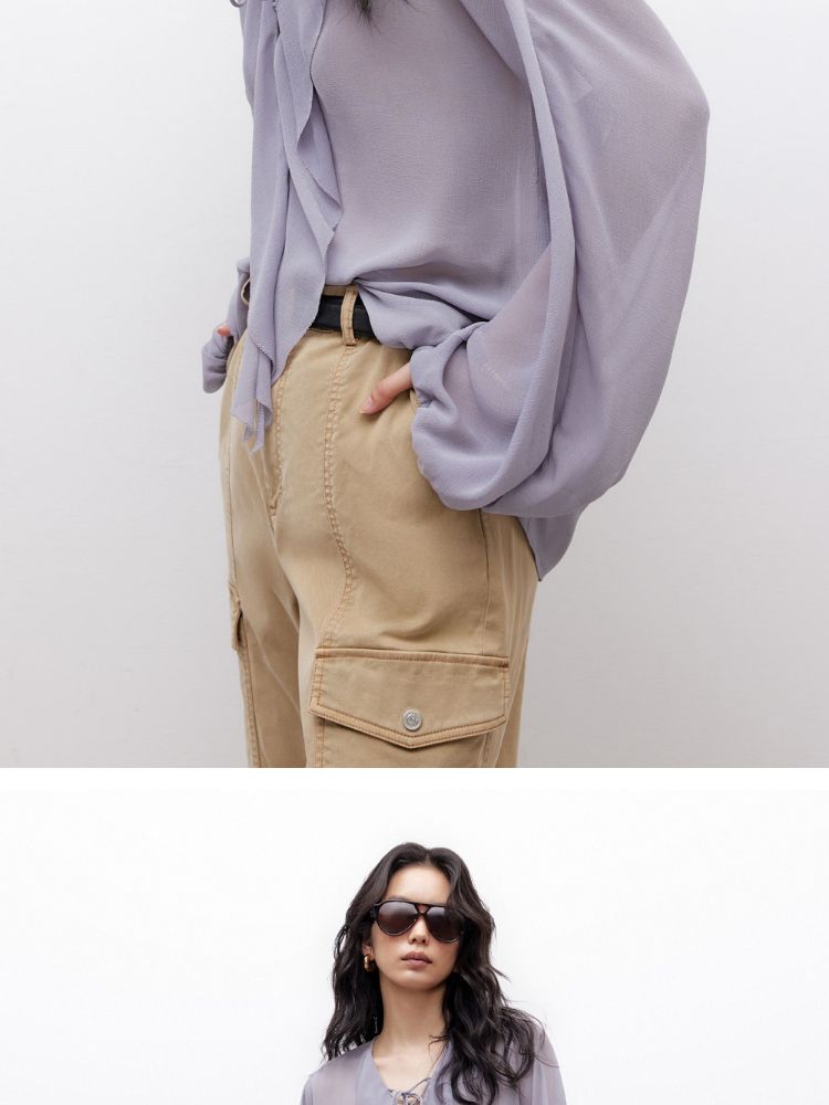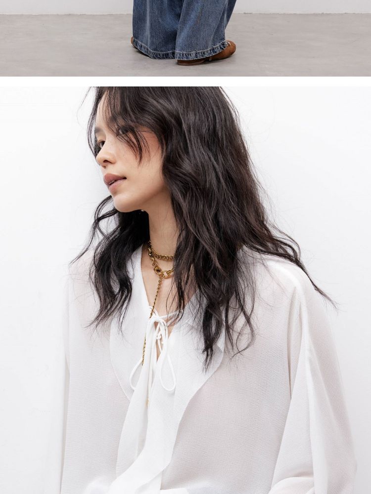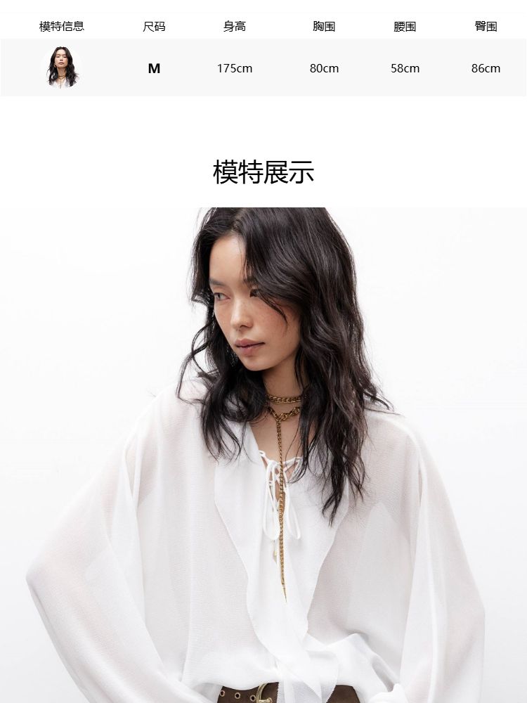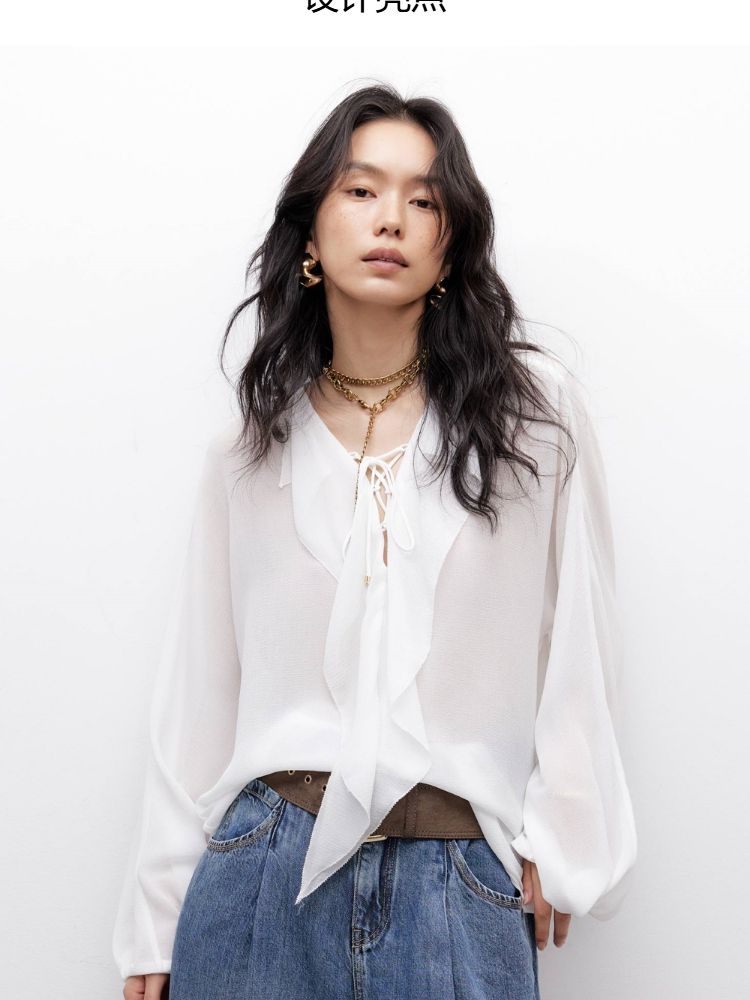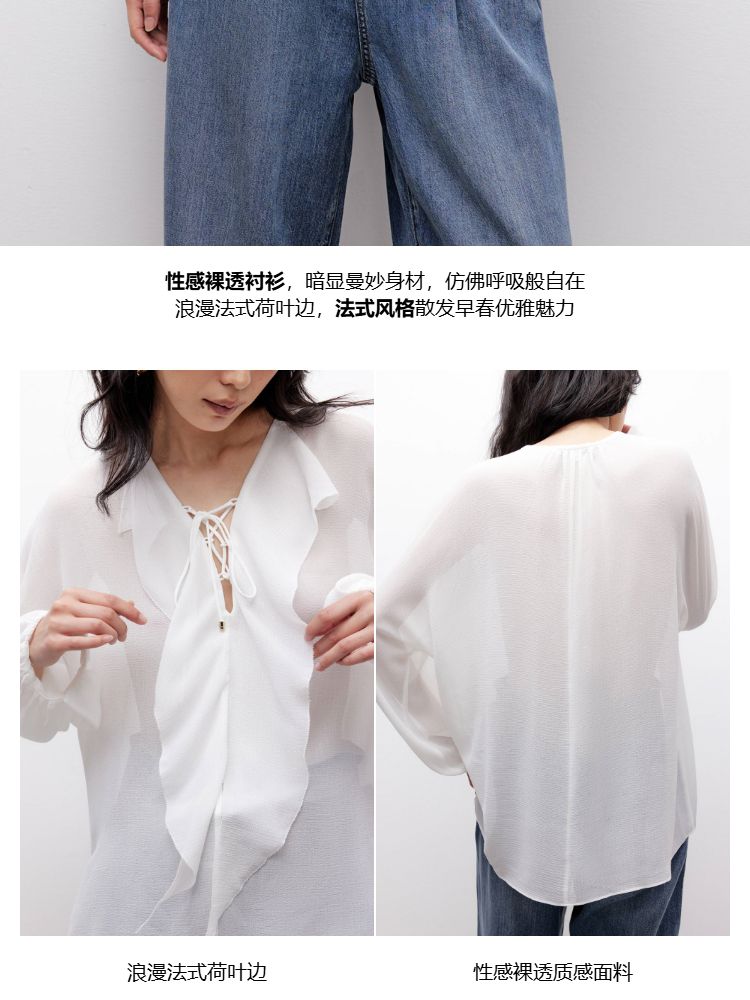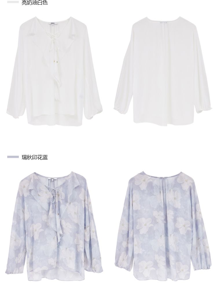 商品名称:【优雅荷叶边】2025夏季法式轻薄质感长袖雪纺衫女 757850