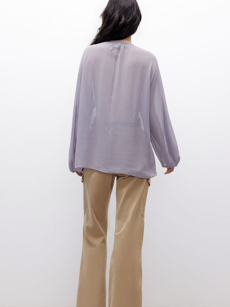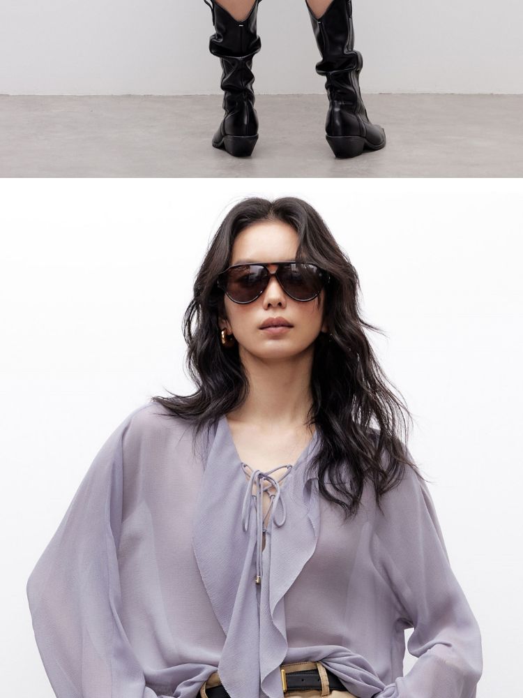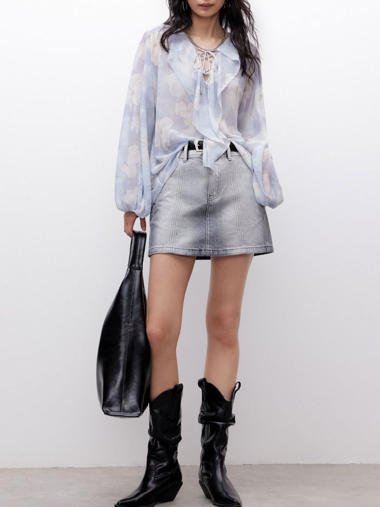 【优雅荷叶边】2025夏季法式轻薄质感长袖雪纺衫女 757850