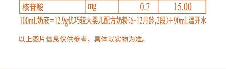 商品名称:完达山 优巧较大婴儿配方奶粉 2段 758g(6-12月)*不支持异地扫描积分