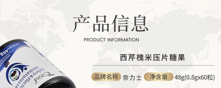 商品名称:奈力士 西芹槐米压片糖果/60片/瓶