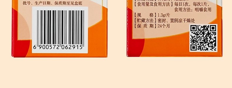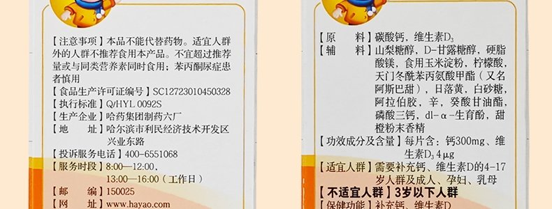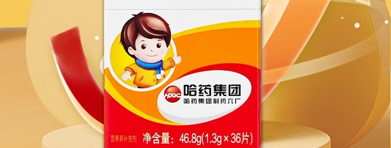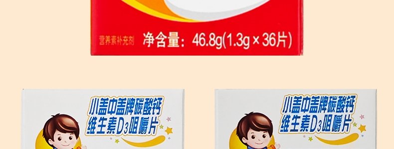 商品名称:哈药 小盖中盖牌碳酸钙维生素D3咀嚼片 1.3g*36片 适合4岁以上