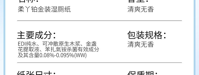 商品名称:柔丫 铂金装湿厕纸 40抽/包*3包