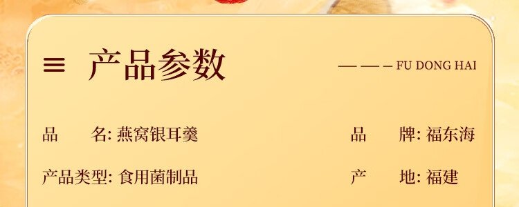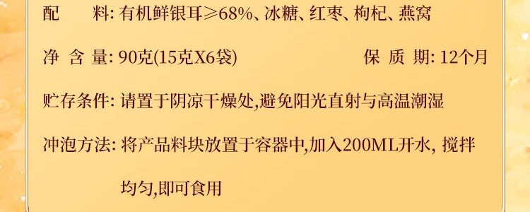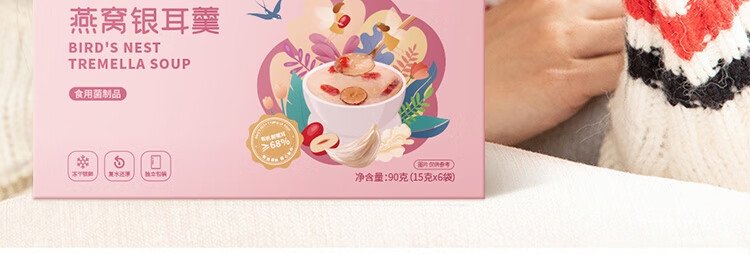 商品名称:福东海 燕窝银耳羹 90克(15克*6包)/盒