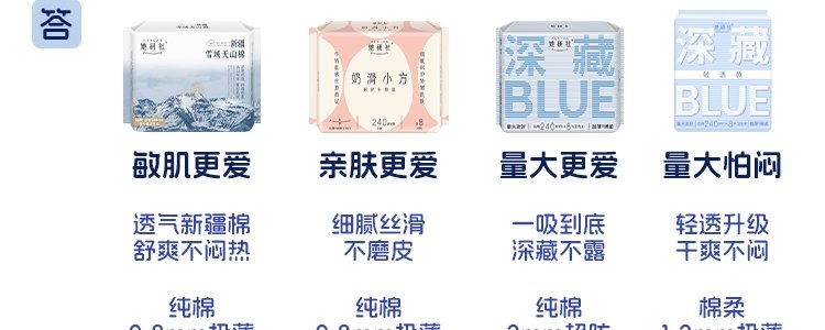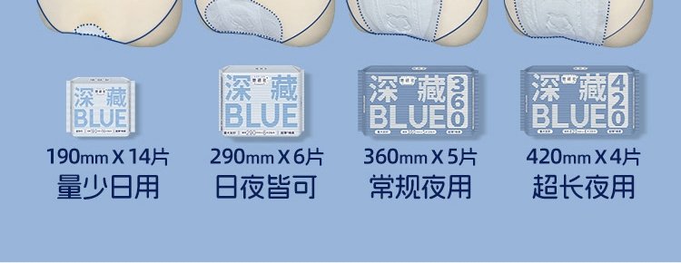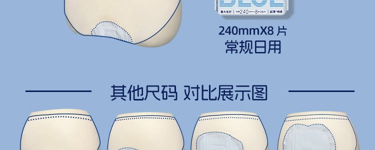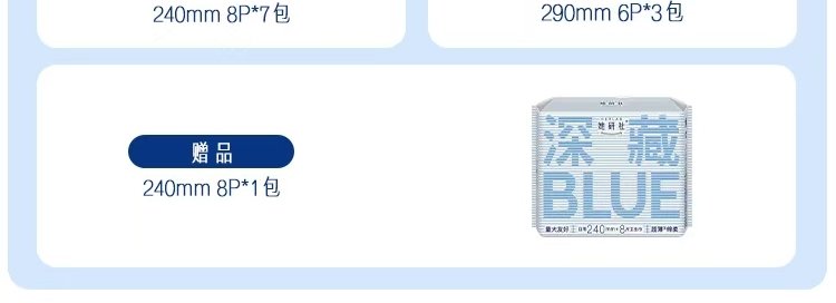 商品名称:她研社 深藏BLUE常规款日夜组合11包82片 (240mm8片×8包+290mm6片×3包)