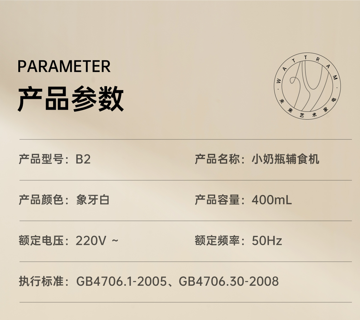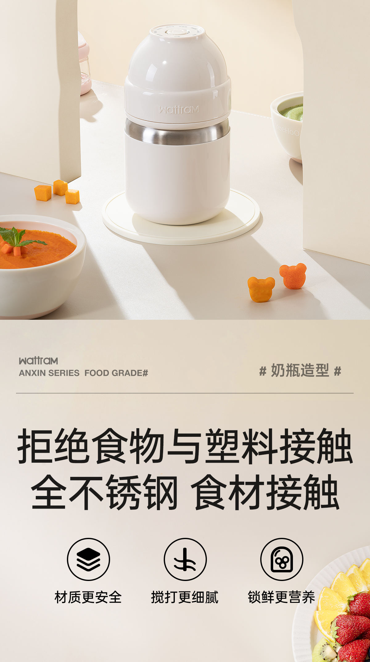 商品名称:wattram/北欧沃朗400毫升小奶瓶辅食机B2
