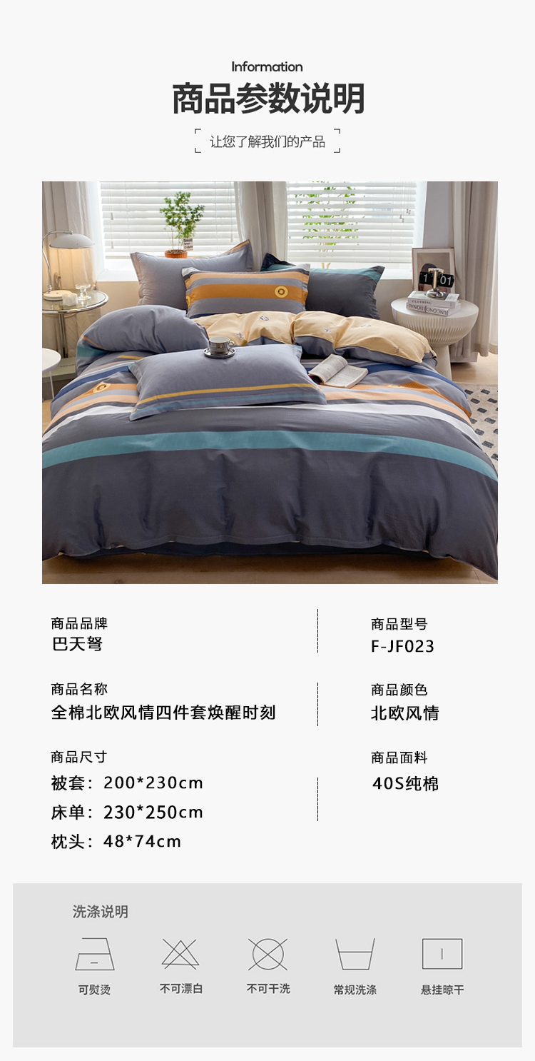 商品名称:BATANUV/巴天弩全棉北欧风情床品四件套-焕醒时刻200*230cm