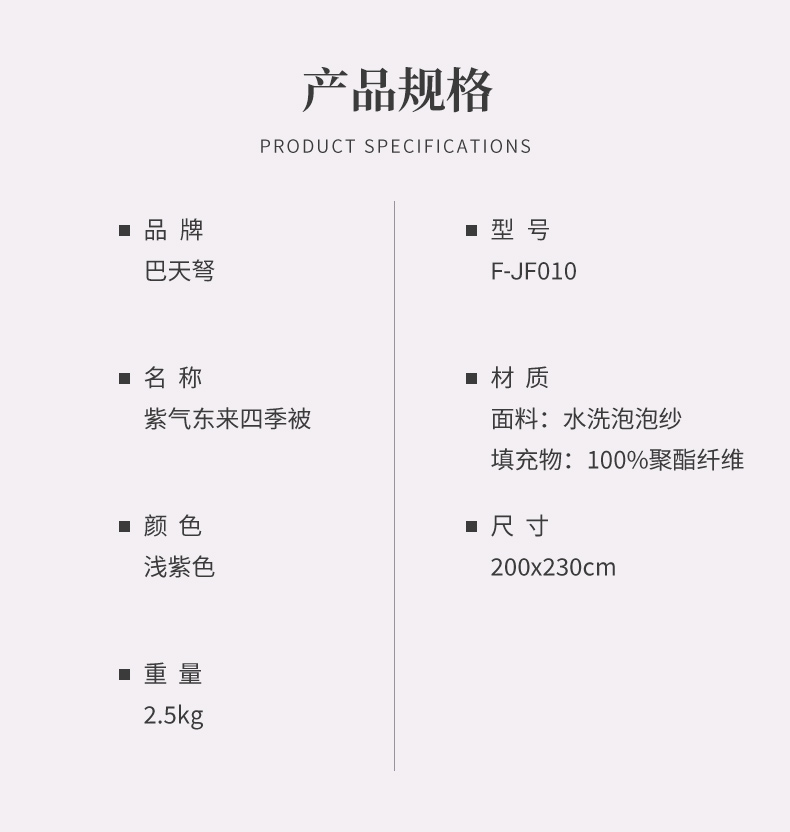 商品名称:BATANUV/巴天弩紫气东来四季被200*230cm 2500g