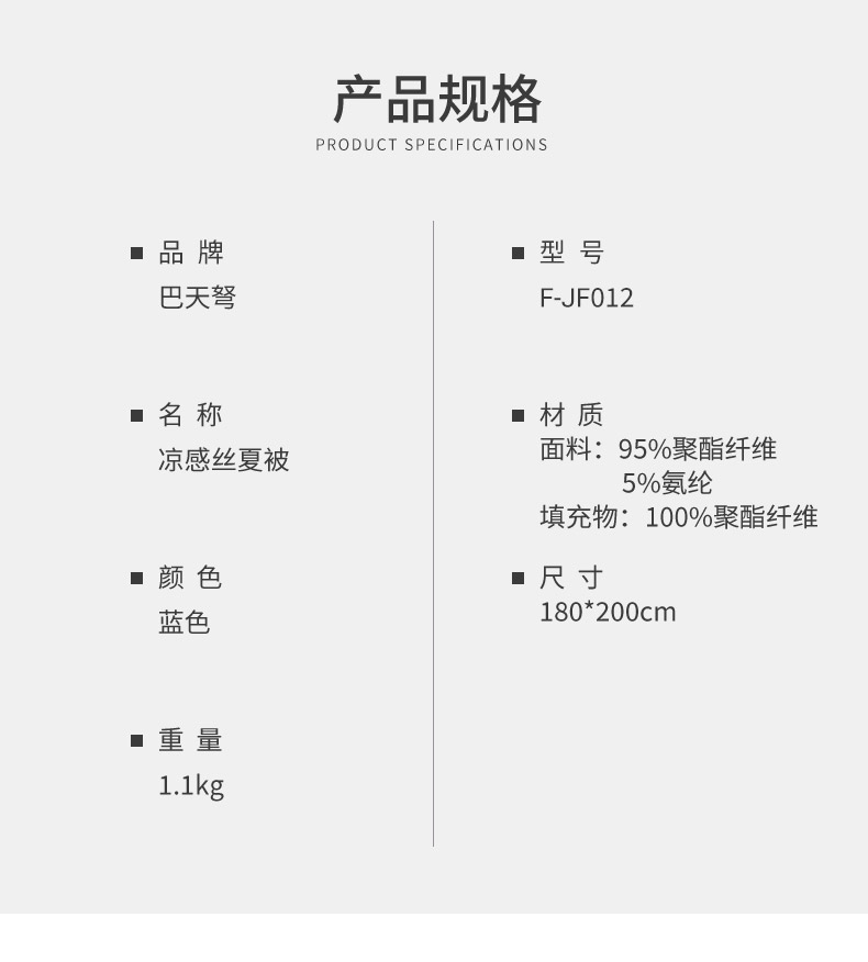 商品名称:BATANUV/巴天弩一蓝无余凉感丝夏被180*200cm 1100g