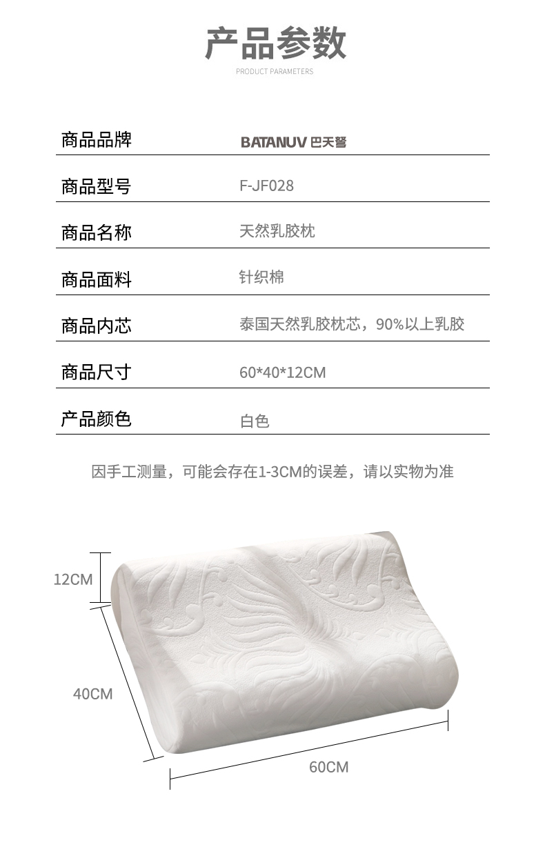 商品名称:BATANUV/巴天弩天然乳胶枕1只