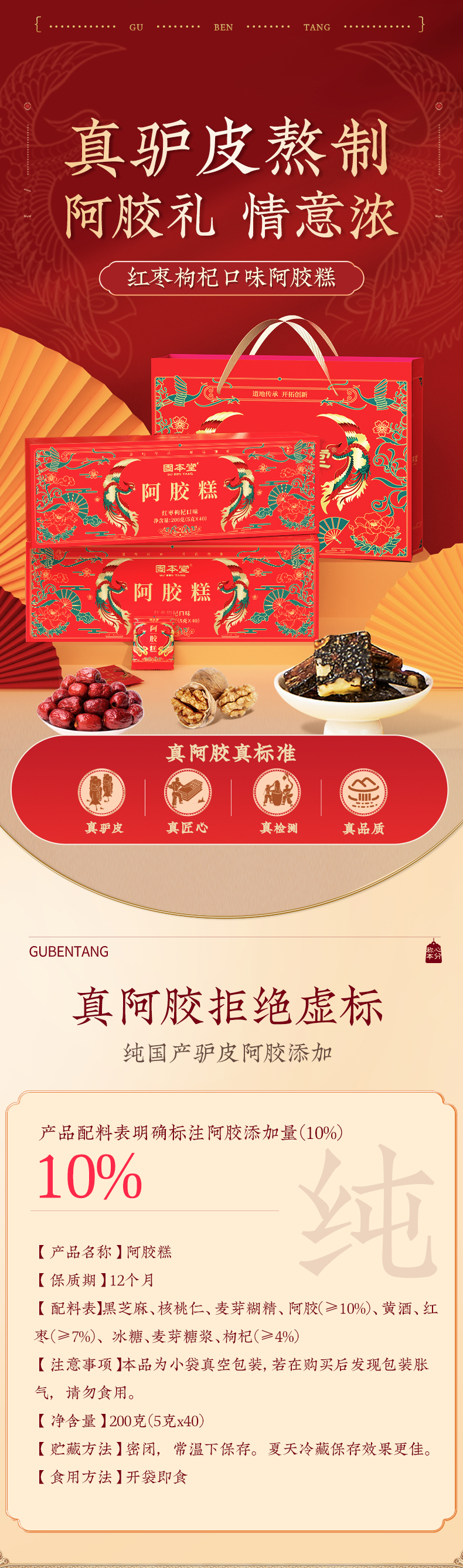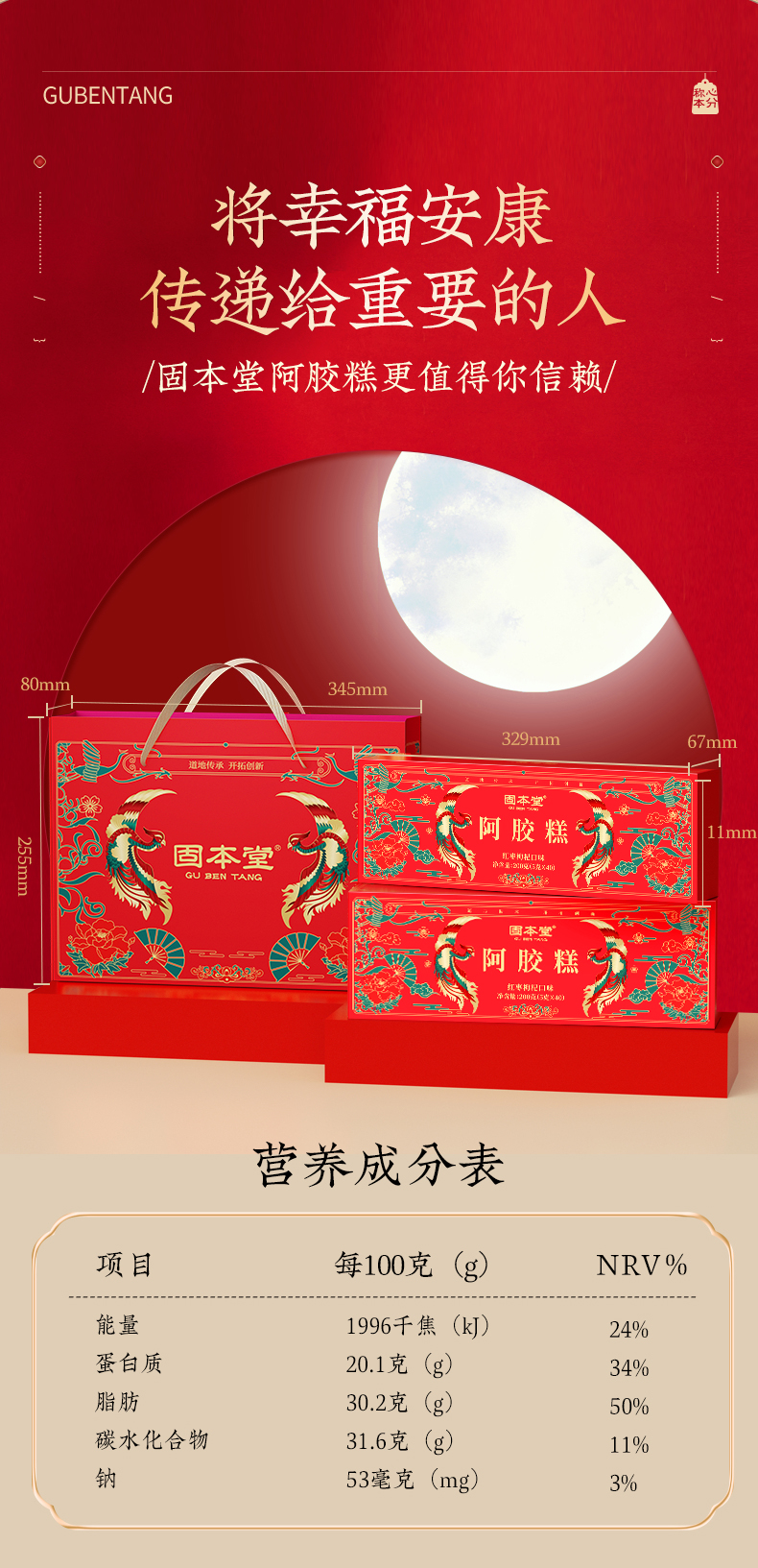 商品名称:固本堂红枣枸杞阿胶糕礼盒200g*2盒