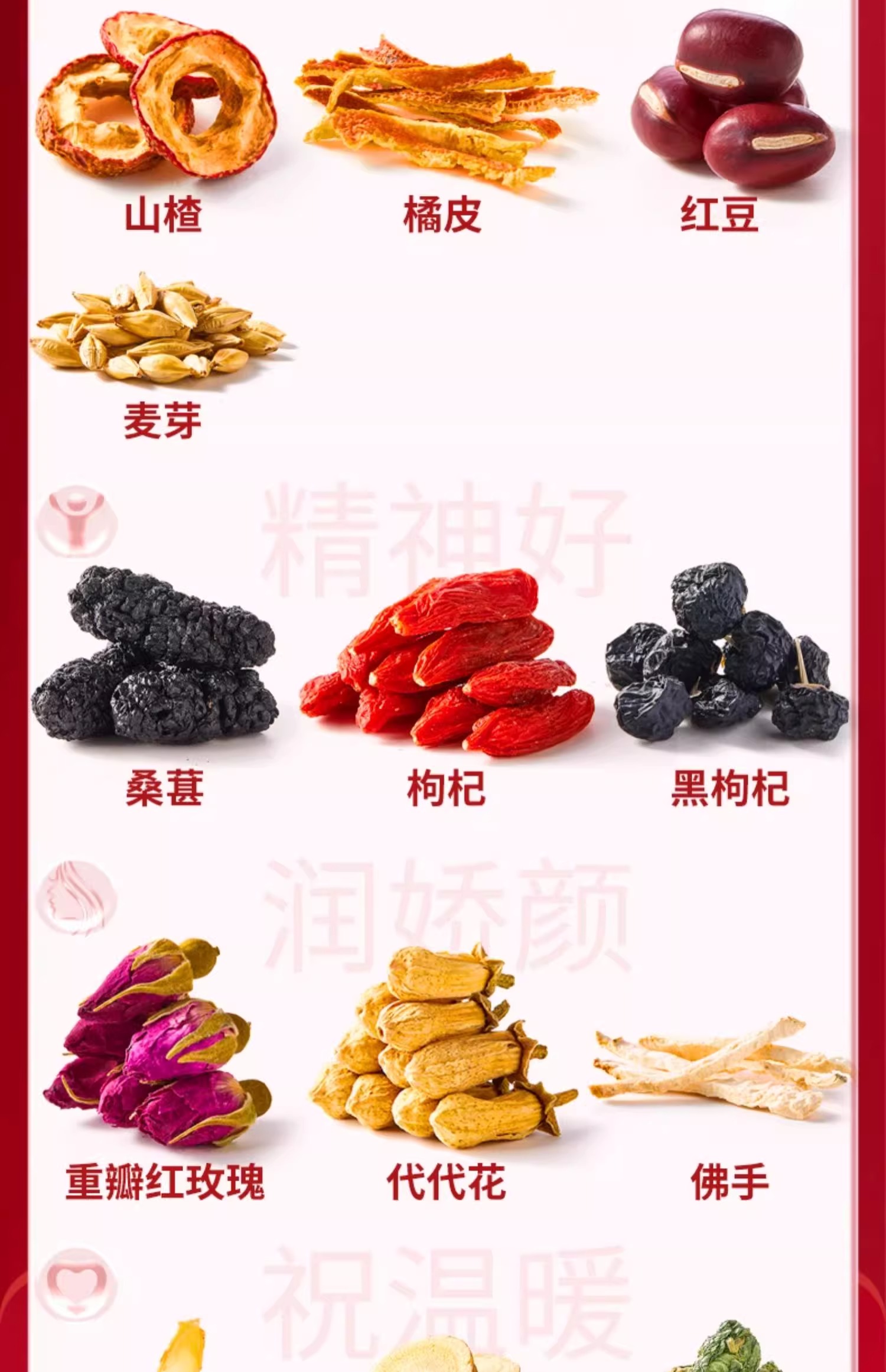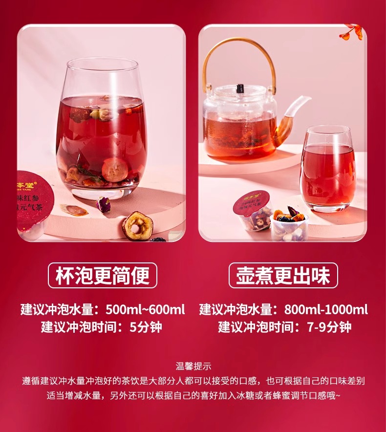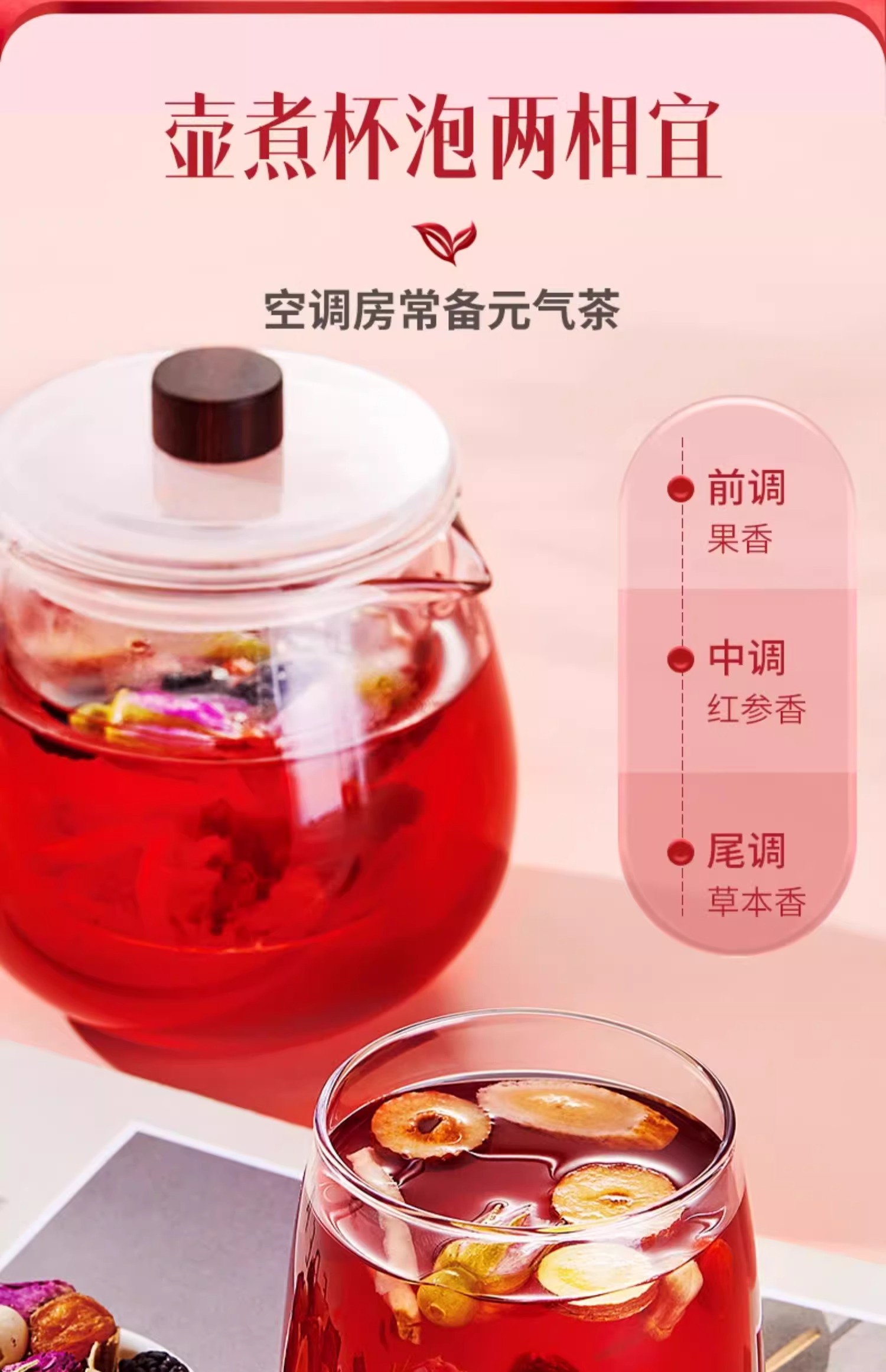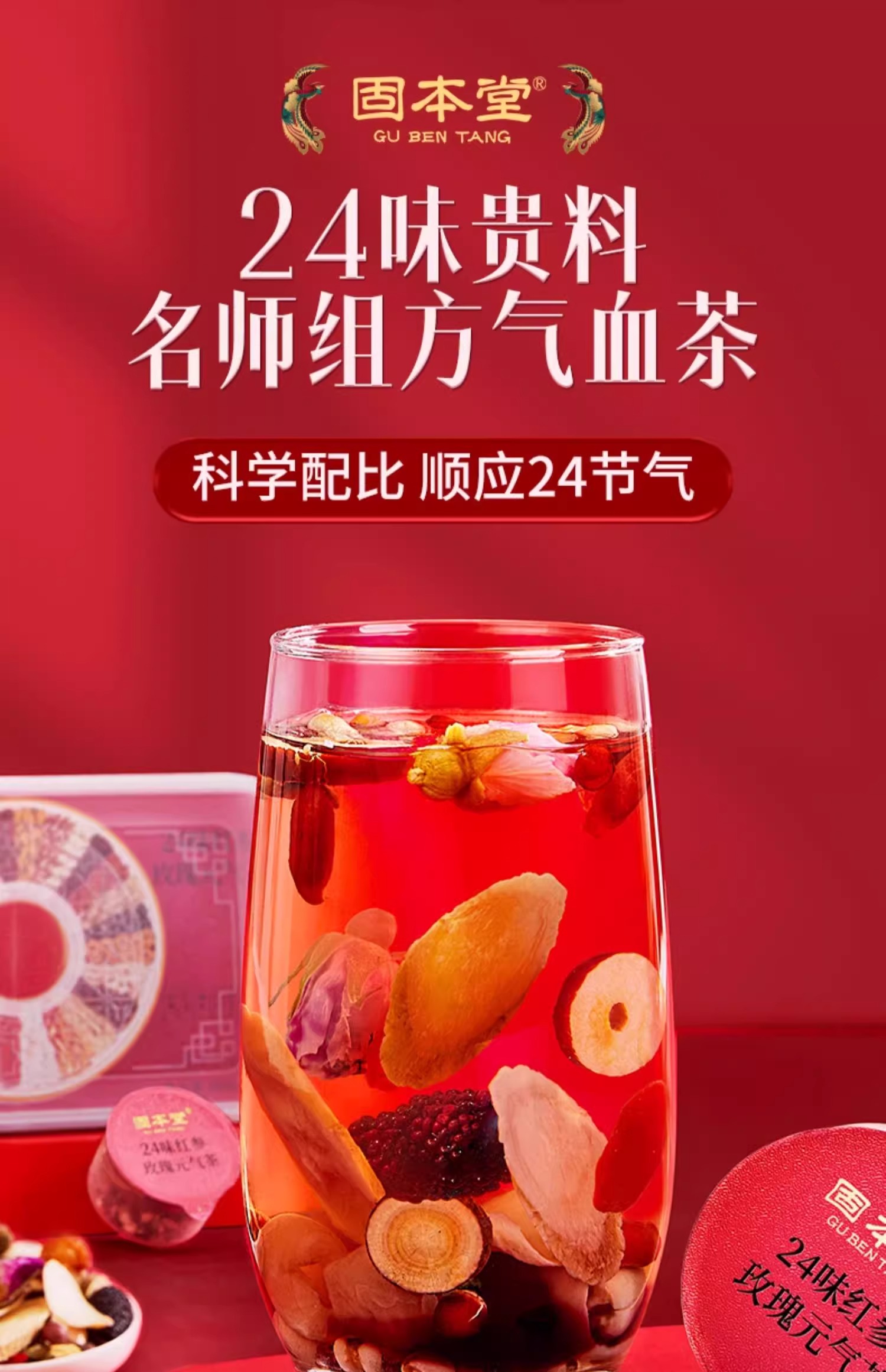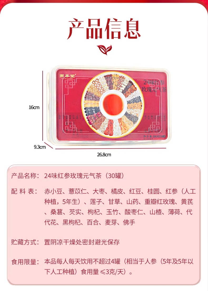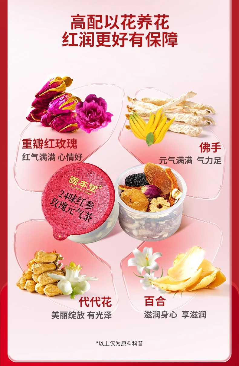 商品名称:固本堂二十四味红参玫瑰元气茶500g