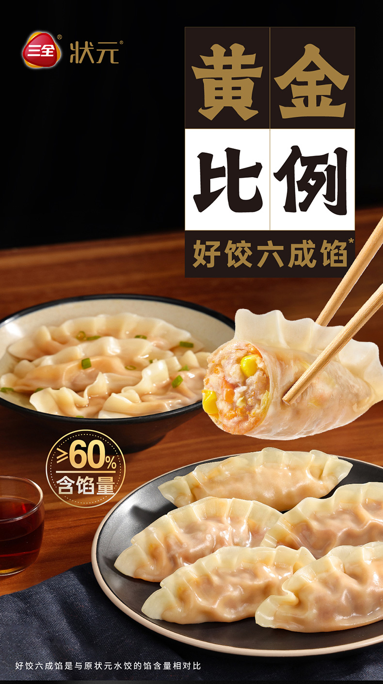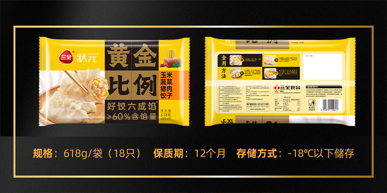 商品名称:【京东/顺丰配送】三全状元黄金比例玉米蔬菜猪肉速冻饺子618g*3袋