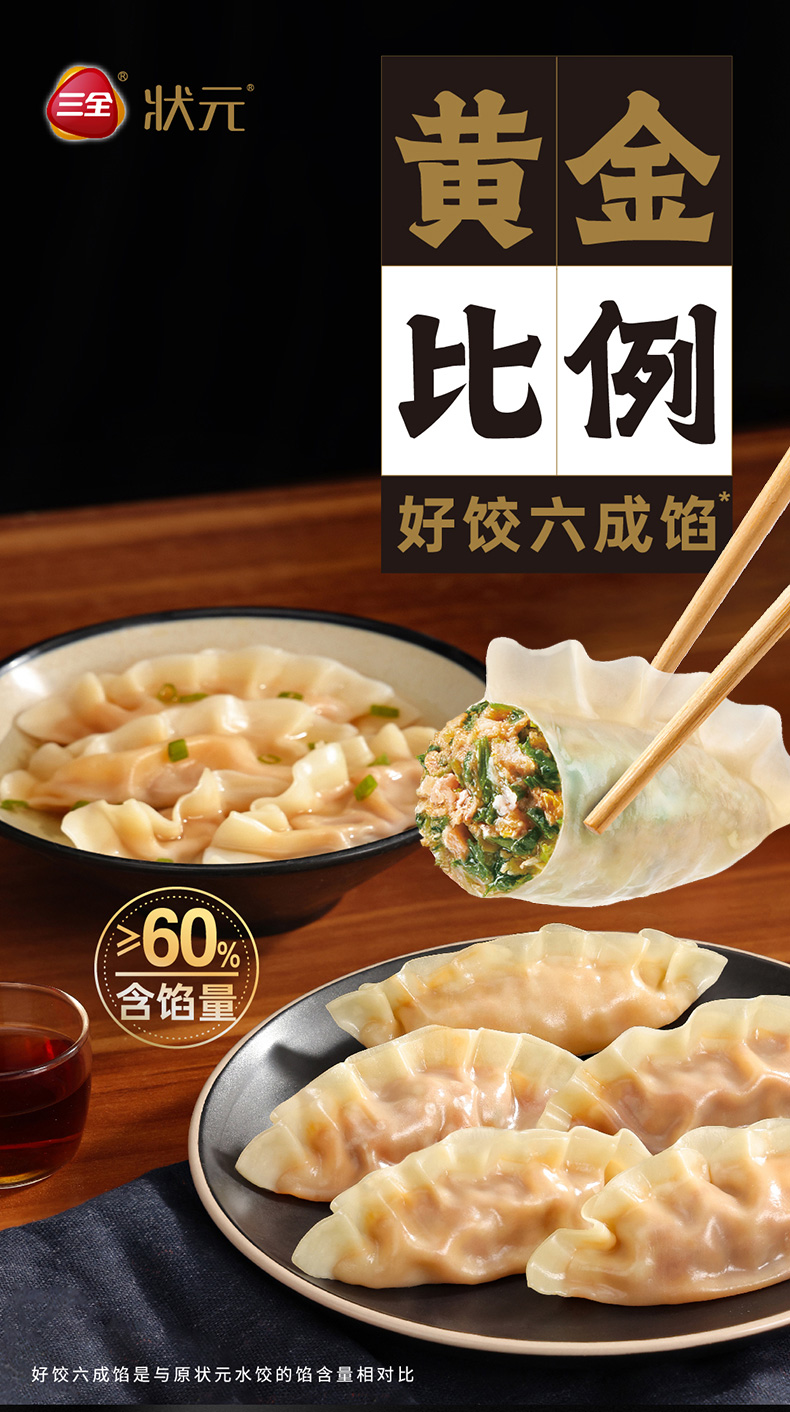 【京东/顺丰配送】三全状元黄金比例荠菜猪肉速冻饺子618g*3袋