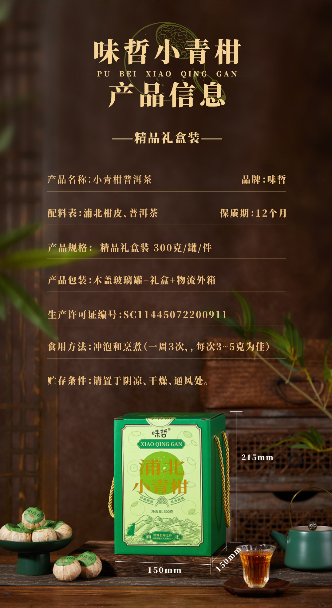 商品名称:味哲浦北小青柑普洱茶礼盒300g