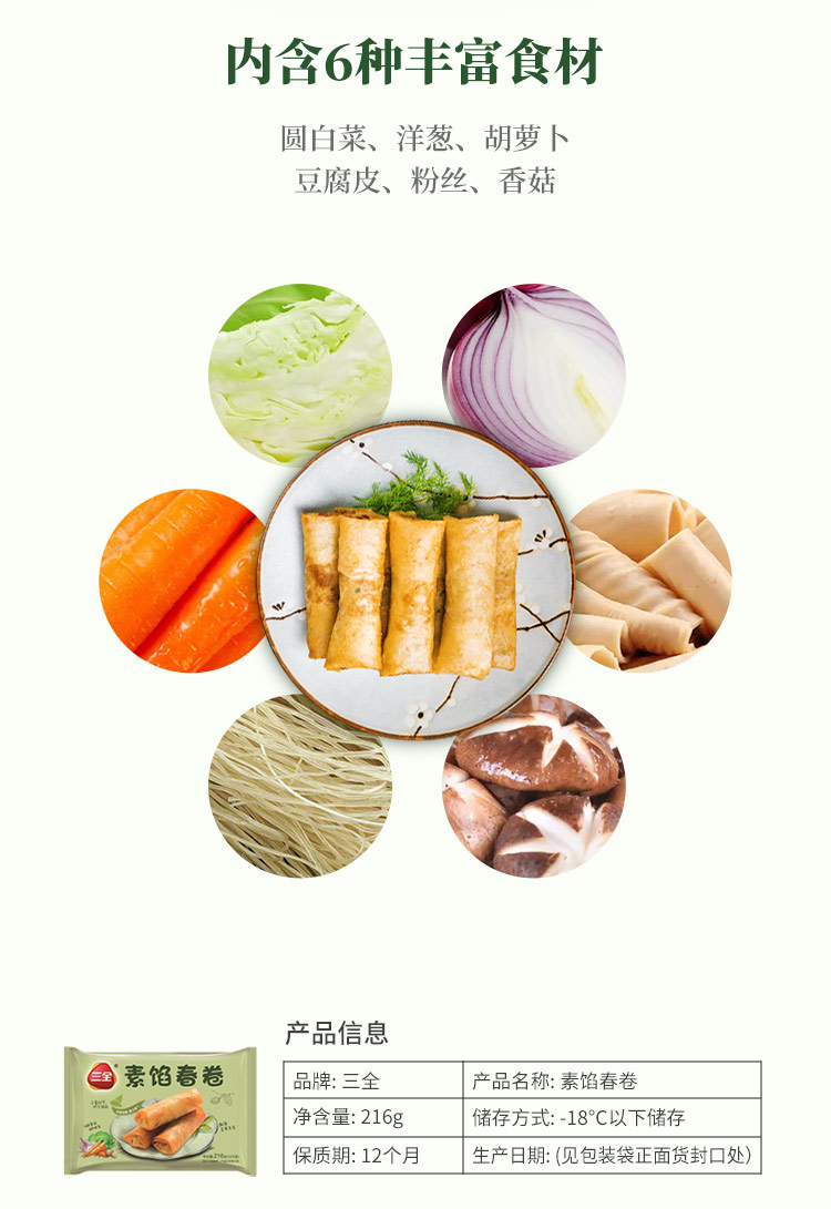 商品名称:【京东/顺丰配送】三全素馅春卷216g*3袋
