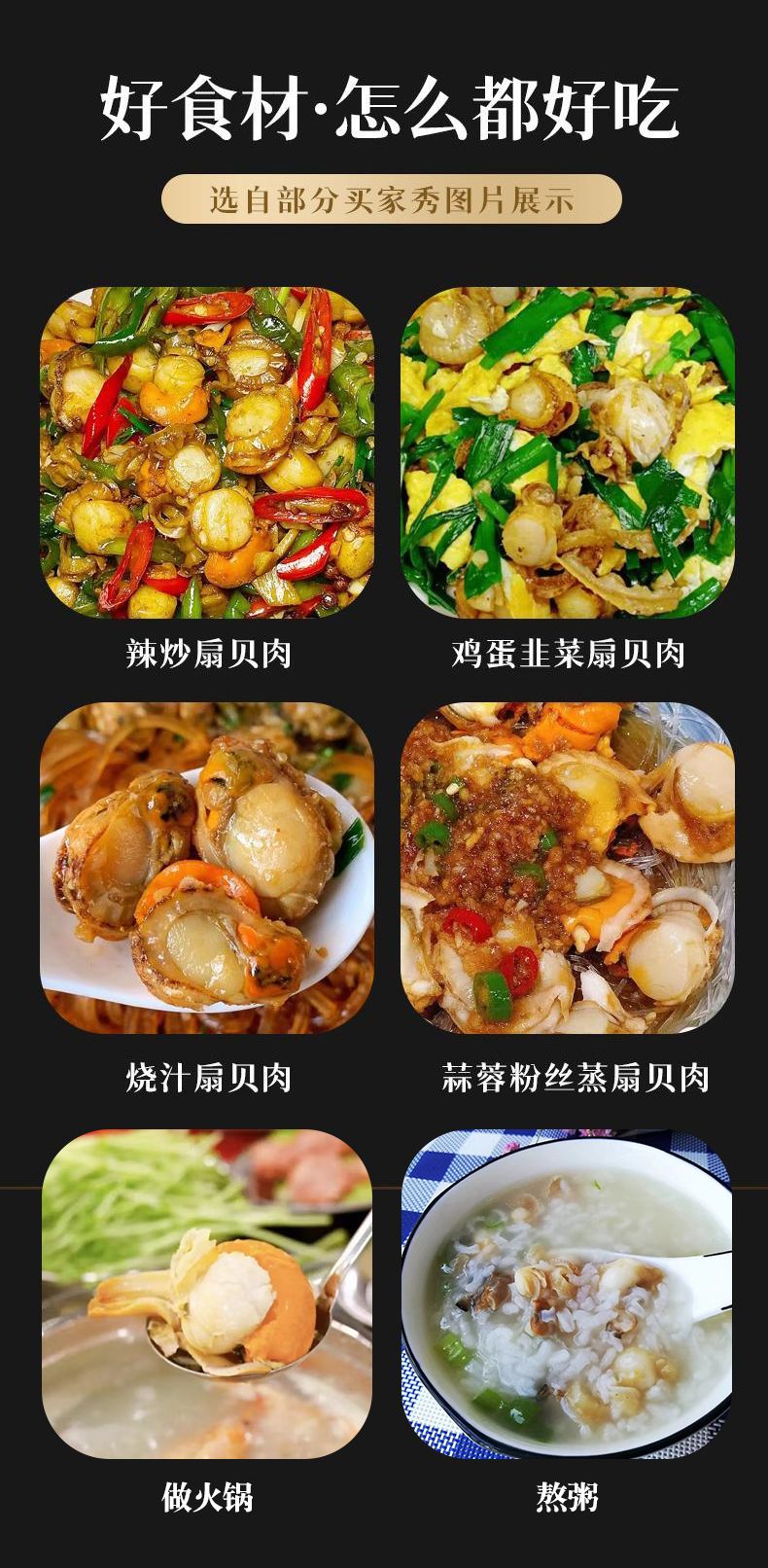 3.食用方式百变简易,可做家常小炒扇贝,粉丝蒜蓉扇贝,扇贝蒸蛋,也可做成海鲜汤佐料等