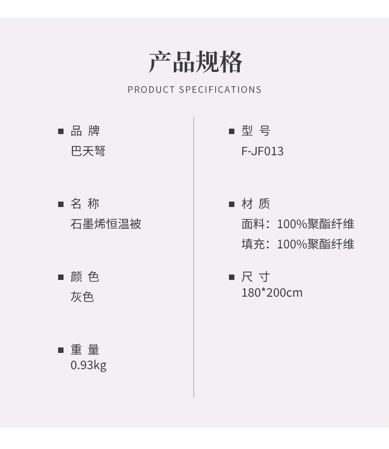 商品名称:BATANUV/巴天弩石墨烯恒温被180*200cm 930g