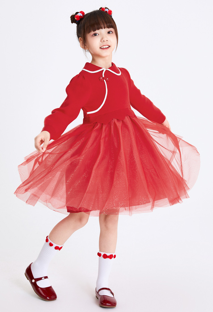 商品名称:新中式国风连衣裙春秋女童大童儿童裙子网纱公主裙精致服 795077