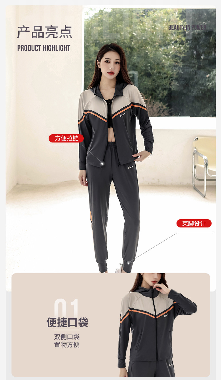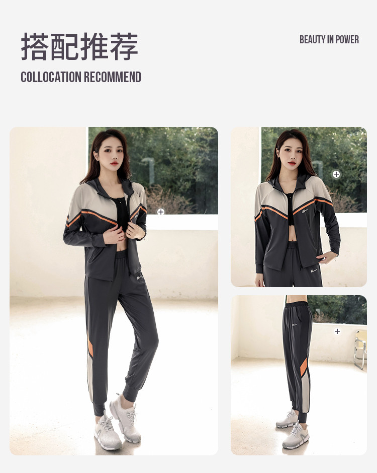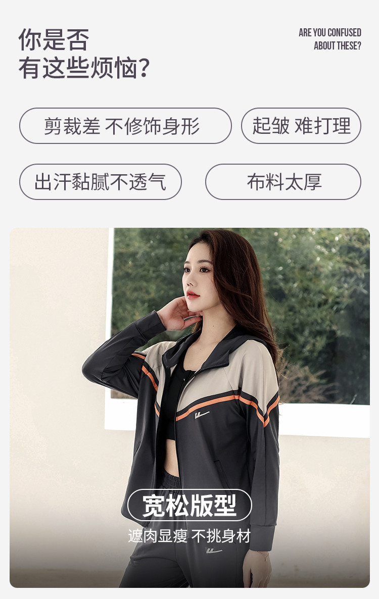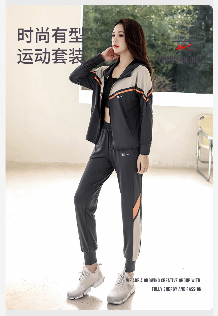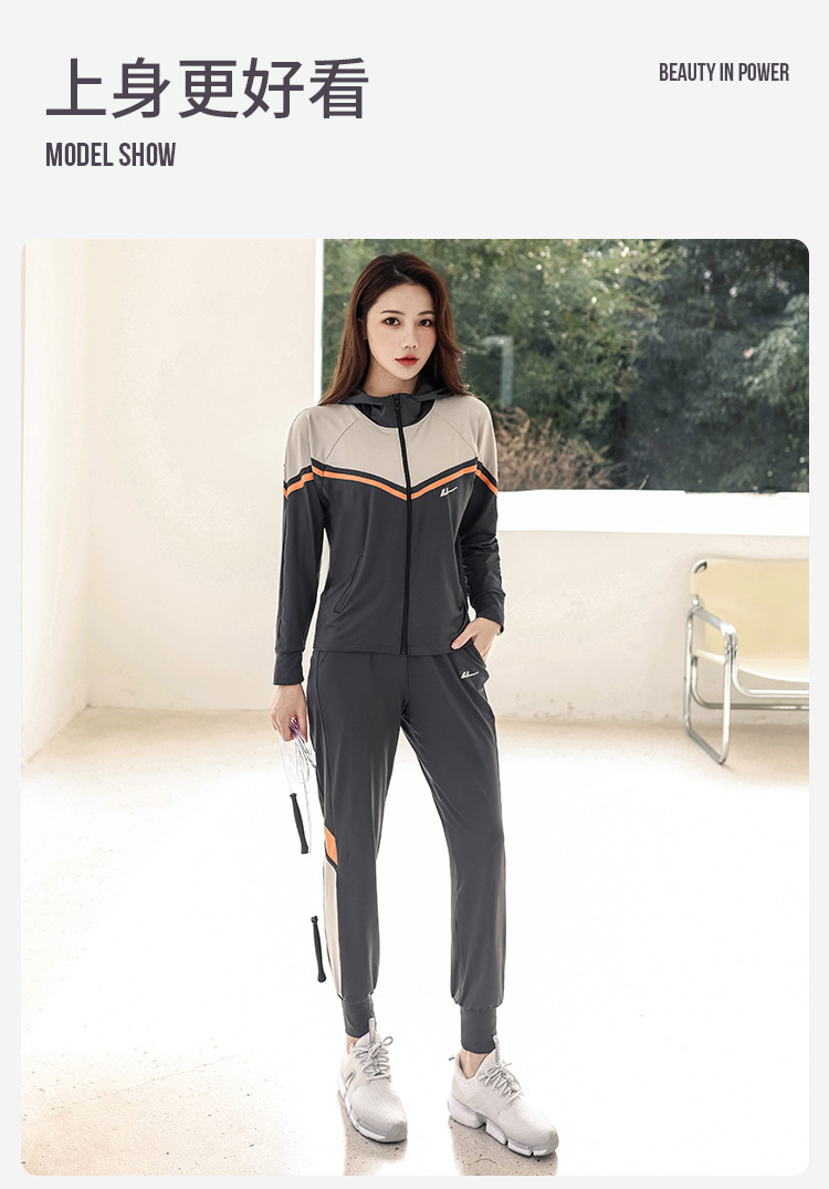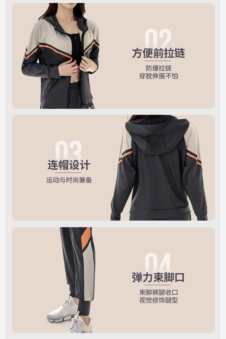 商品名称:运动套装女时尚休闲宽松长袖拉链开衫跑步健身亲肤舒适两件套秋 716499