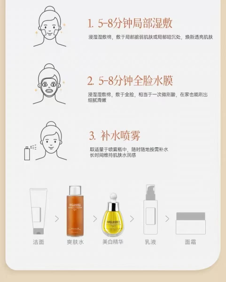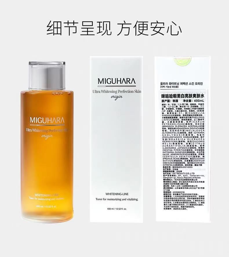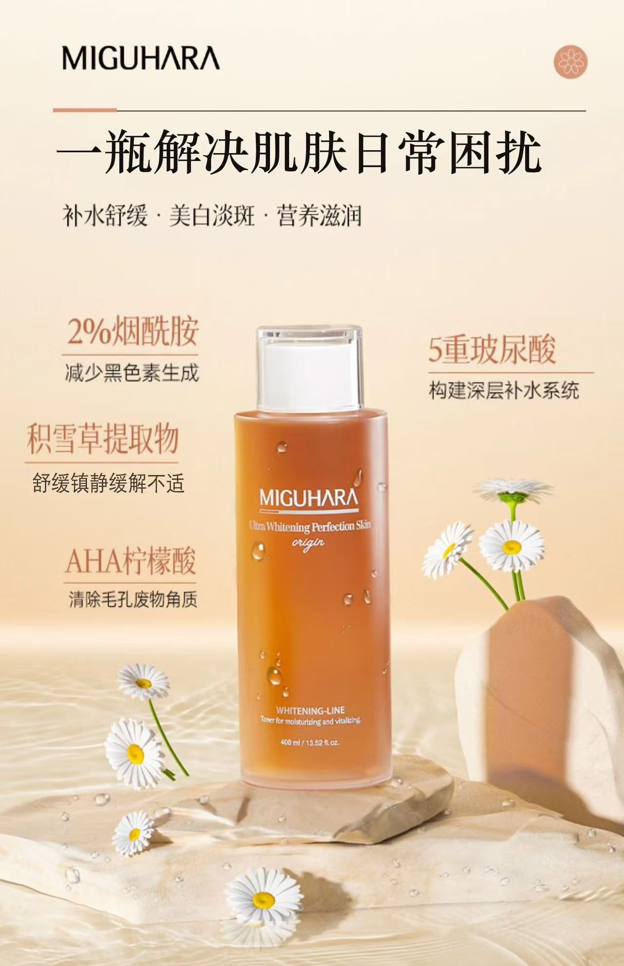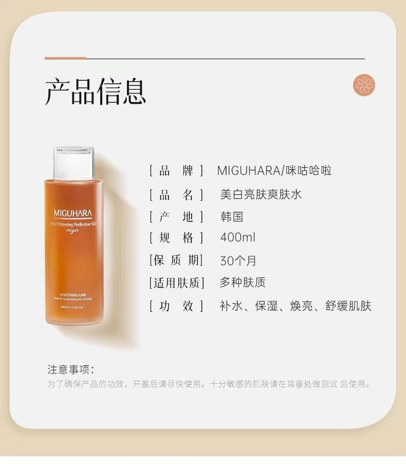 商品名称:miguhara咪咕哈啦湿敷水爽肤水400ml 美白提亮 保湿控油