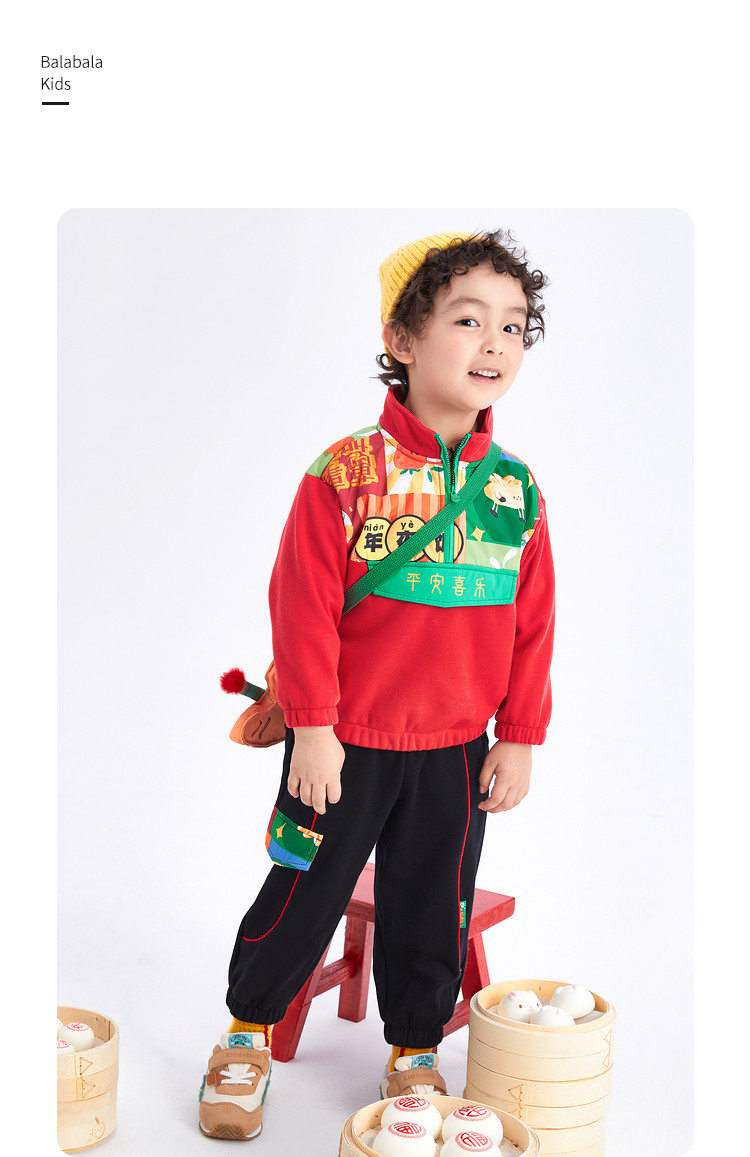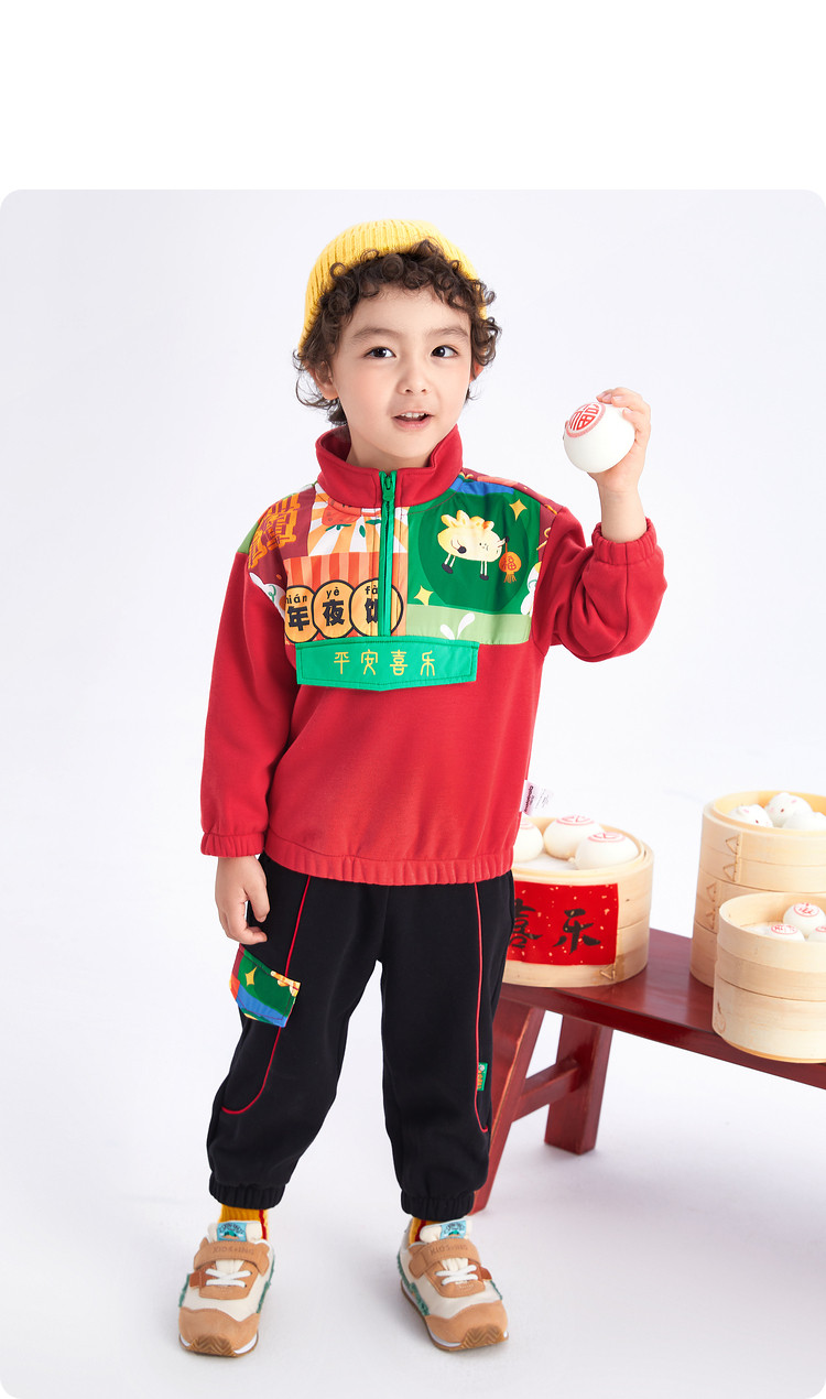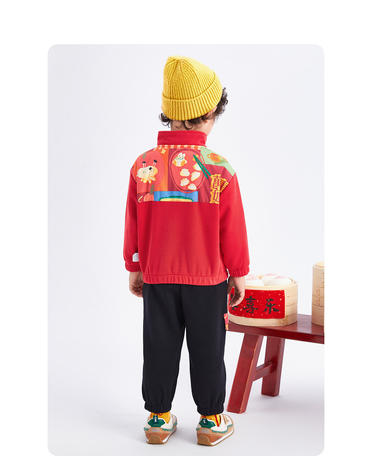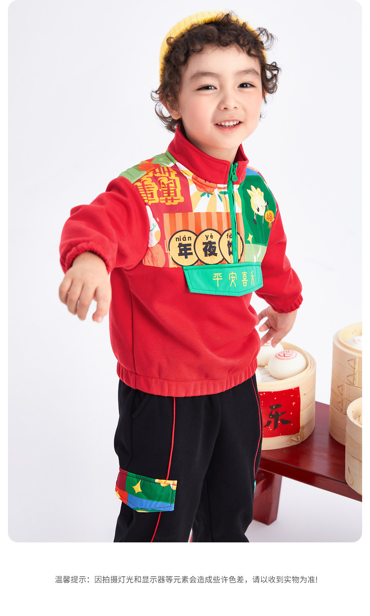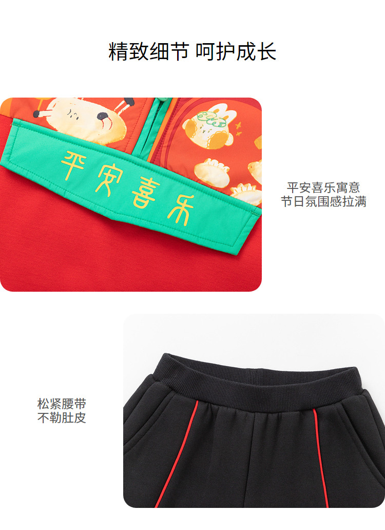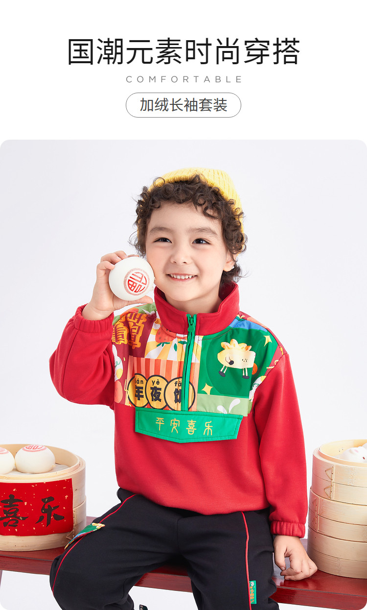 商品名称:加绒国风元素两件套半开襟设计童装儿童长袖套装男童春秋宝宝套装 804805