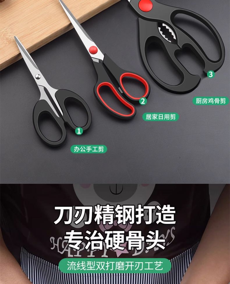 商品名称:美穗吉家(mihooce)家用剪刀三件套不锈钢厨房剪刀多功能裁缝剪办公手工剪 3件套