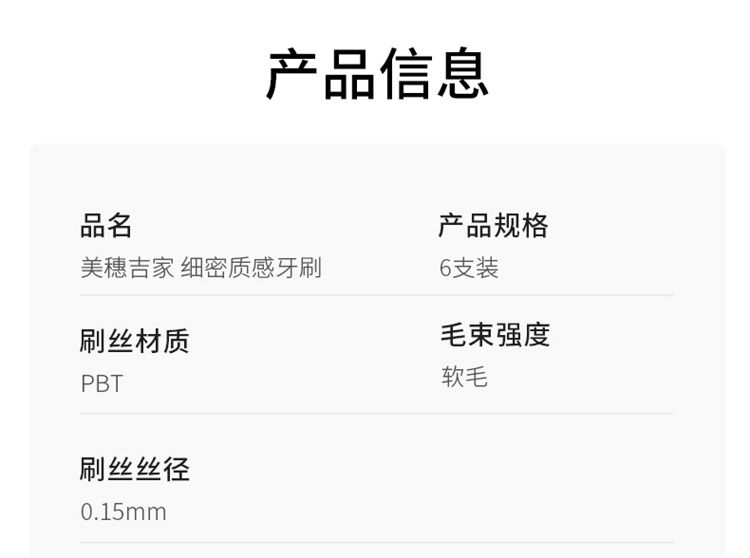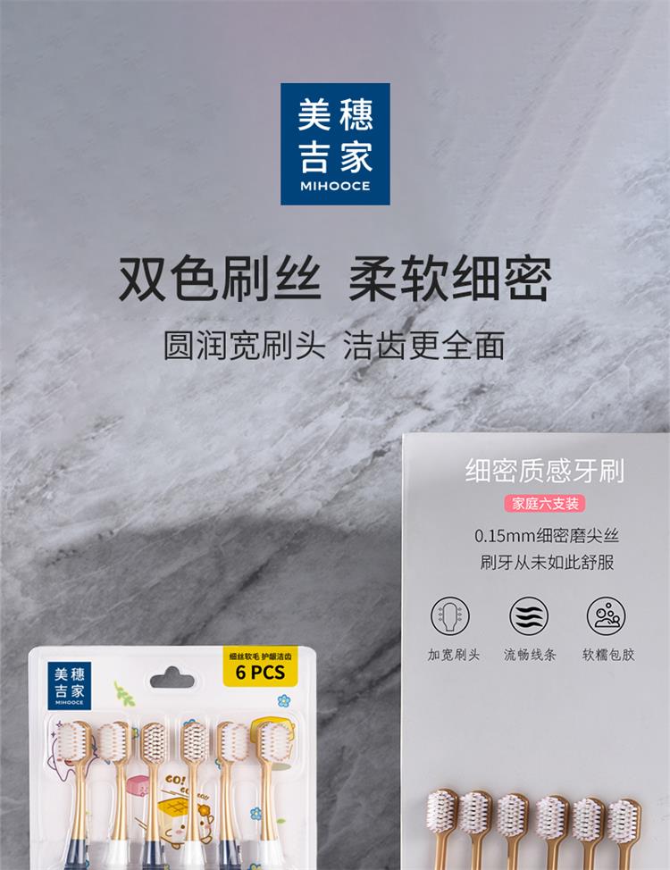 商品名称:美穗吉家(mihooce)护龈宽头牙刷 双色柔软细密磨尖丝 软毛 6支装