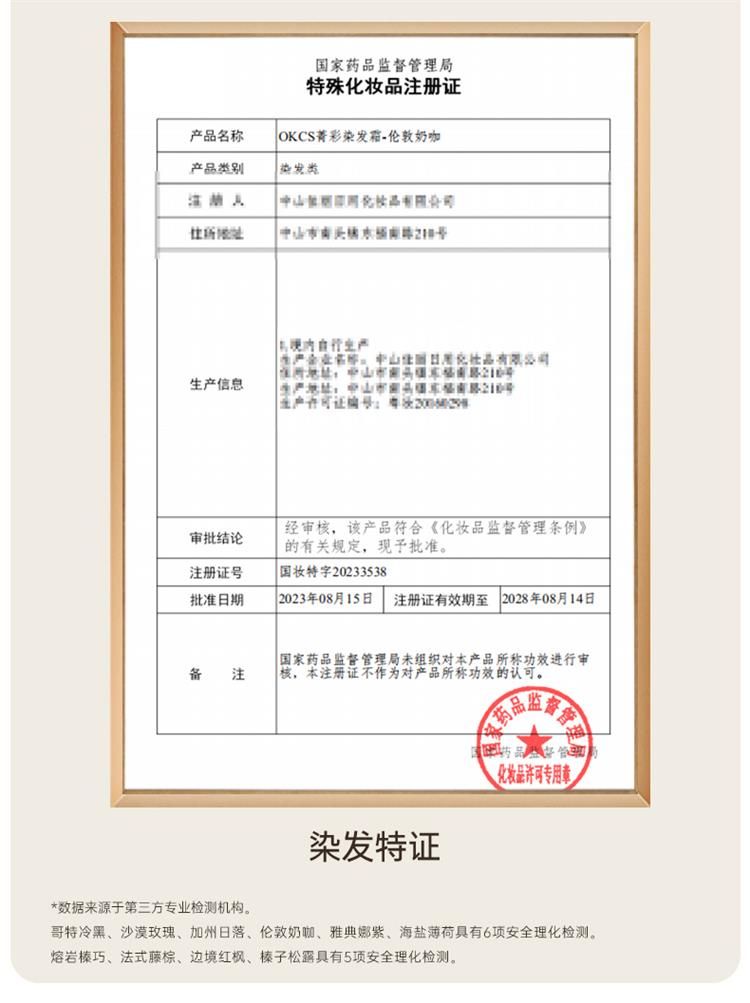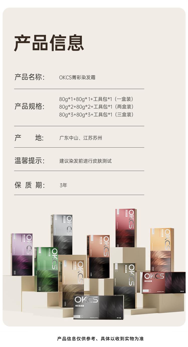 商品名称:OKCS菁彩染发霜植物精华家用染发膏男女通用遮白发染发剂多色可选