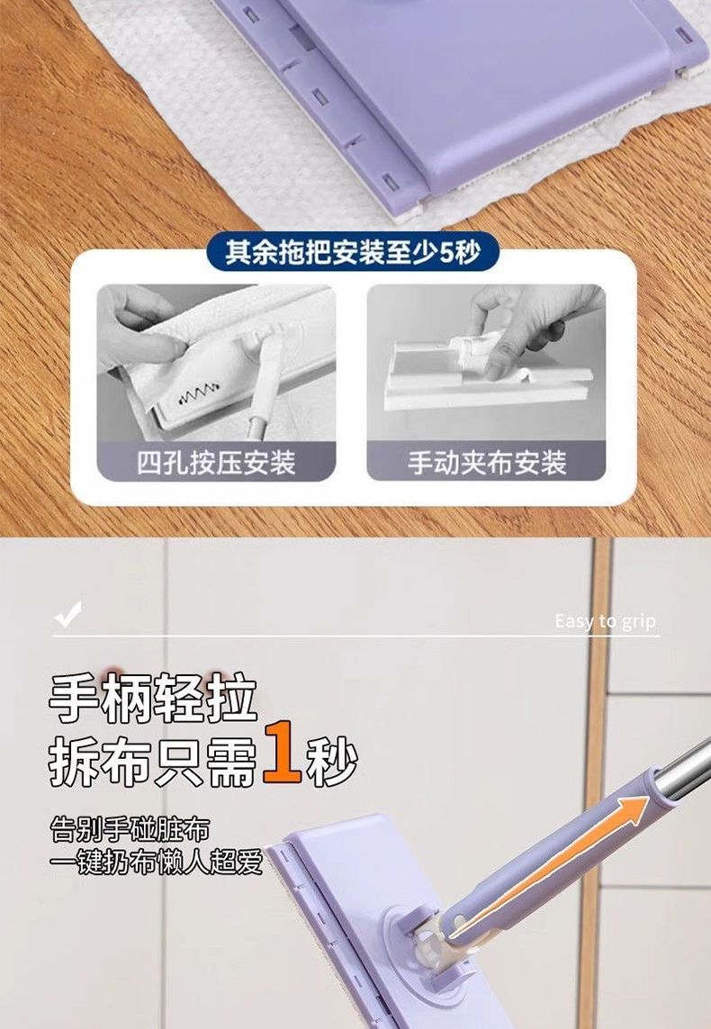 美穗吉家(mihooce)洗脸巾拖把夹可伸缩免洗拖把懒人洗车一次性湿巾 1把