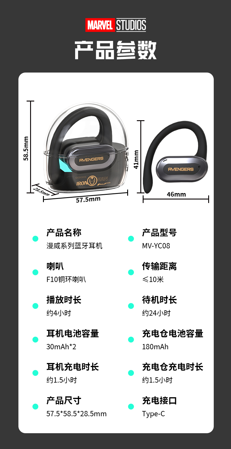 商品名称:DISNEY/迪士尼漫威冰甲无线耳机MV-YC08