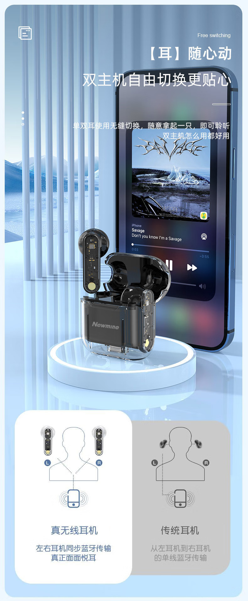 Newmine/纽曼透明降噪无线蓝牙耳机LY11