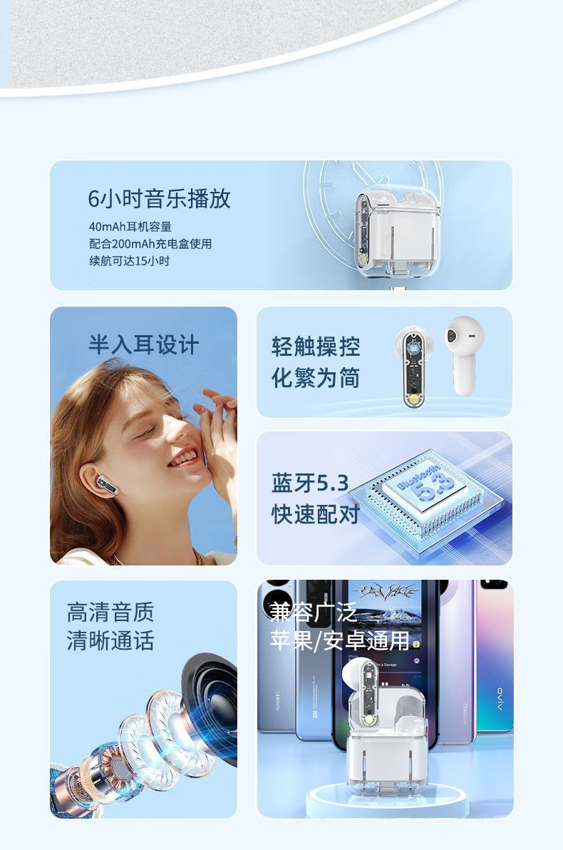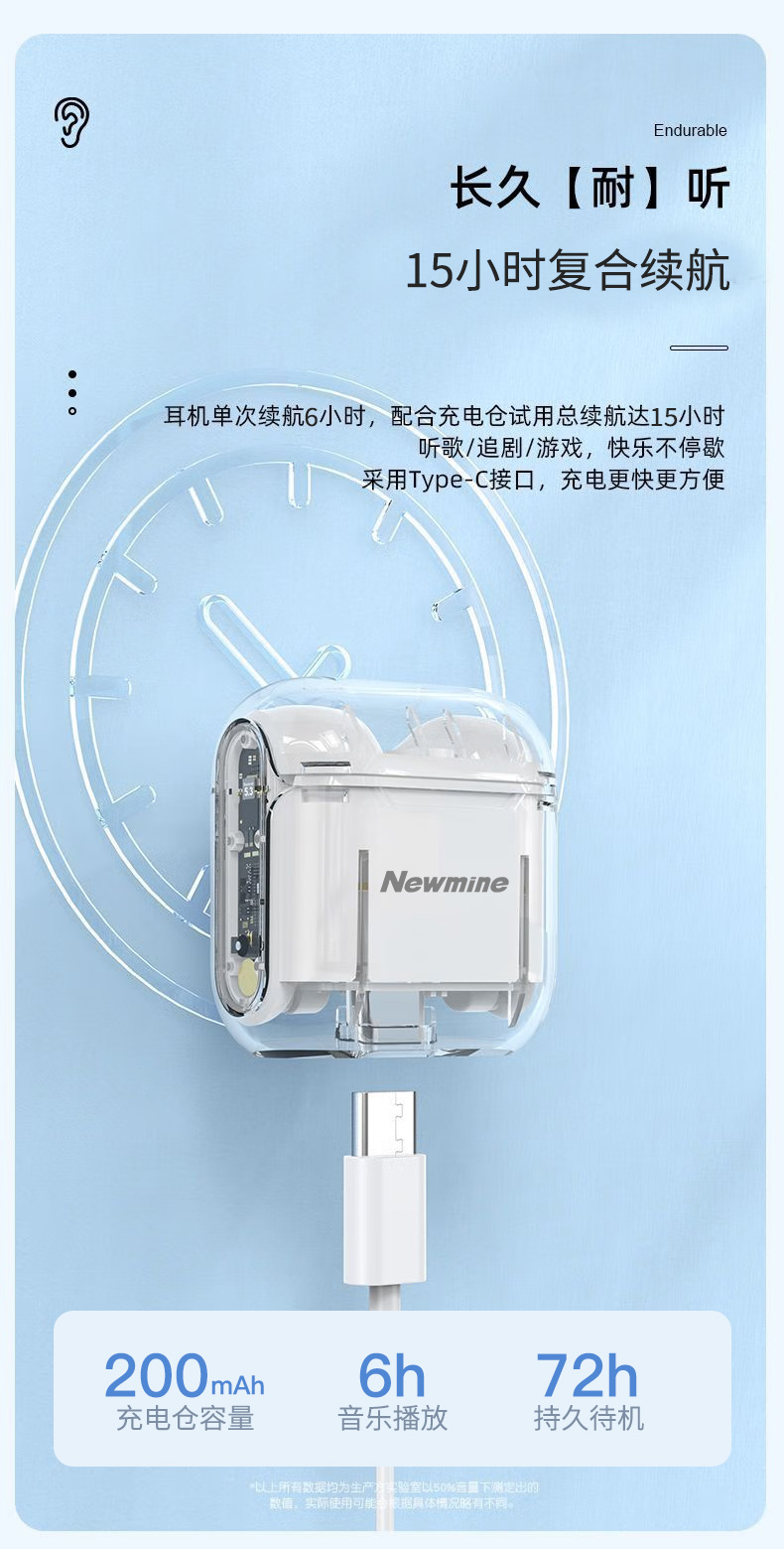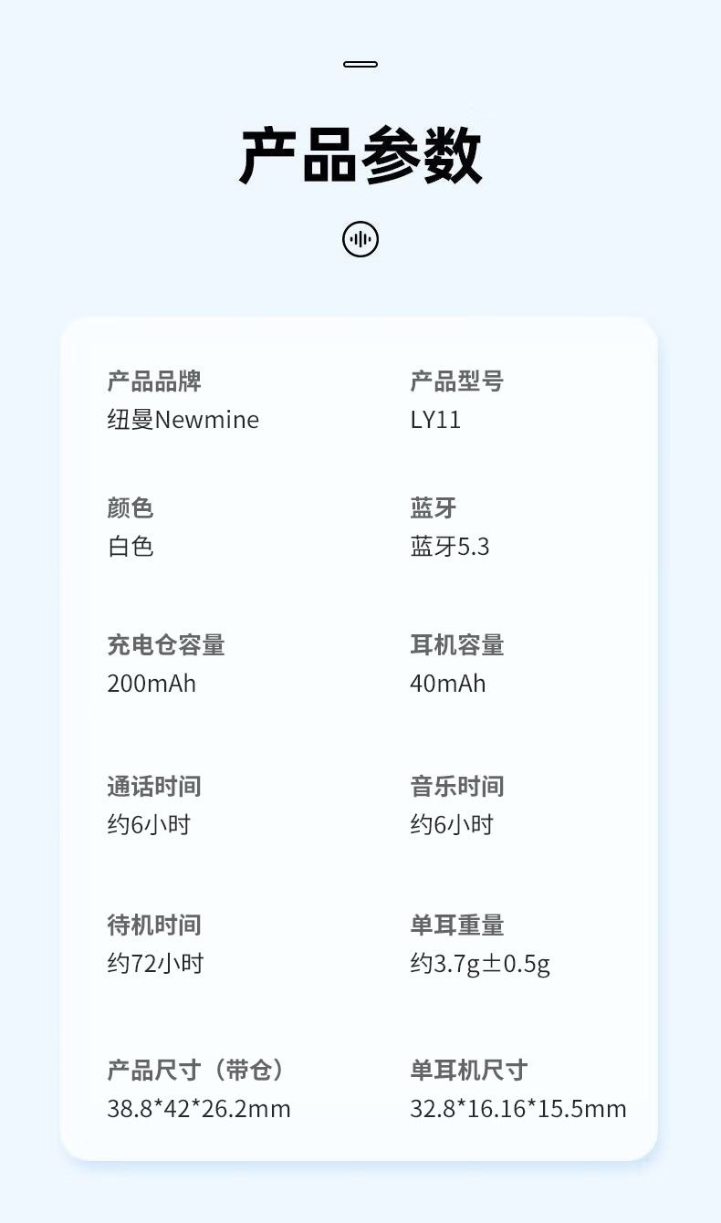 商品名称:Newmine/纽曼透明降噪无线蓝牙耳机LY11