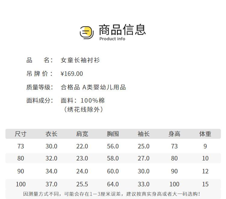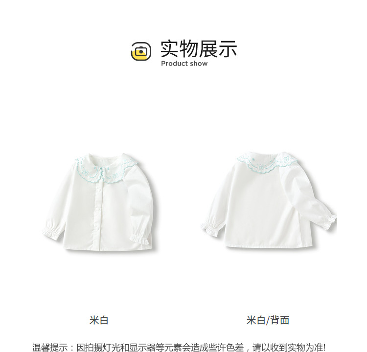商品名称:春秋婴儿衬衫宝宝上衣薄款女童衬衣打底衣花边大翻领精致甜美 292805