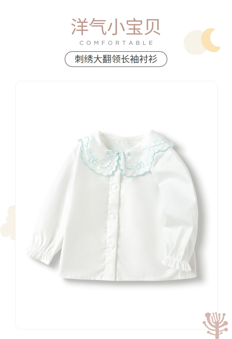 春秋婴儿衬衫宝宝上衣薄款女童衬衣打底衣花边大翻领精致甜美 292805