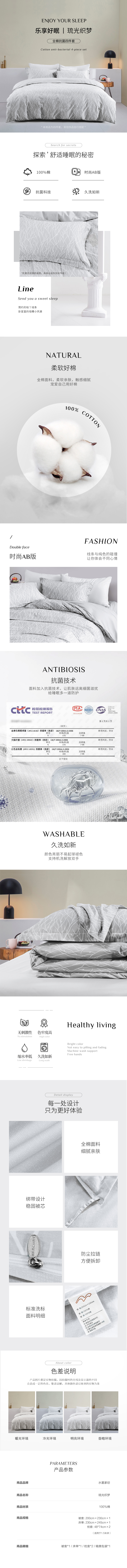 水星家纺琉光织梦全棉抗菌床品四件套200*230cm