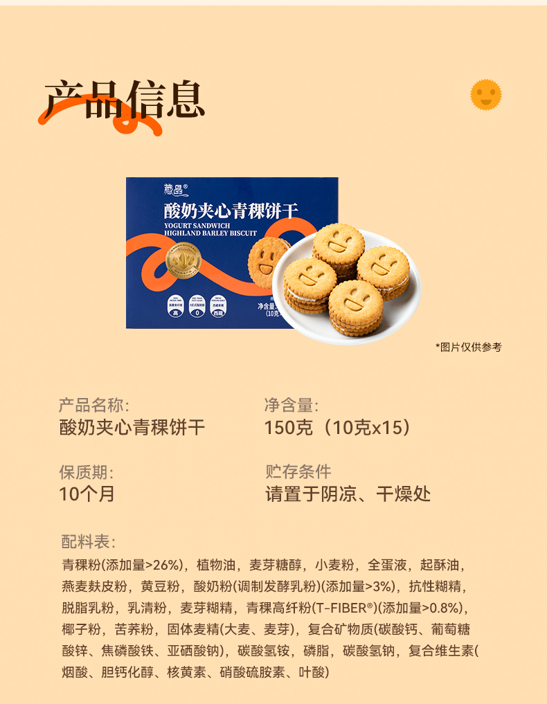 商品名称:藏晶奇正青稞酸奶夹心青稞饼干150g*2盒