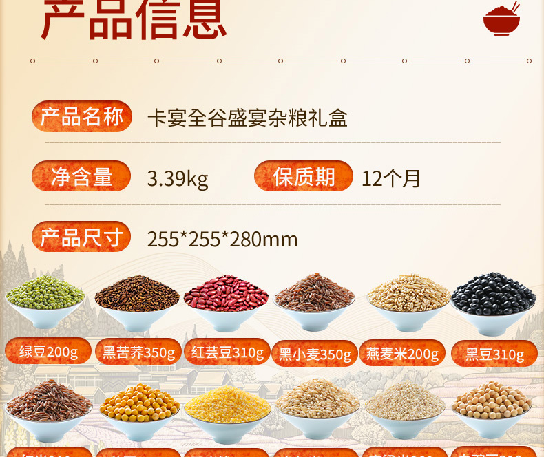 商品名称:卡宴全谷盛宴杂粮礼盒3390g