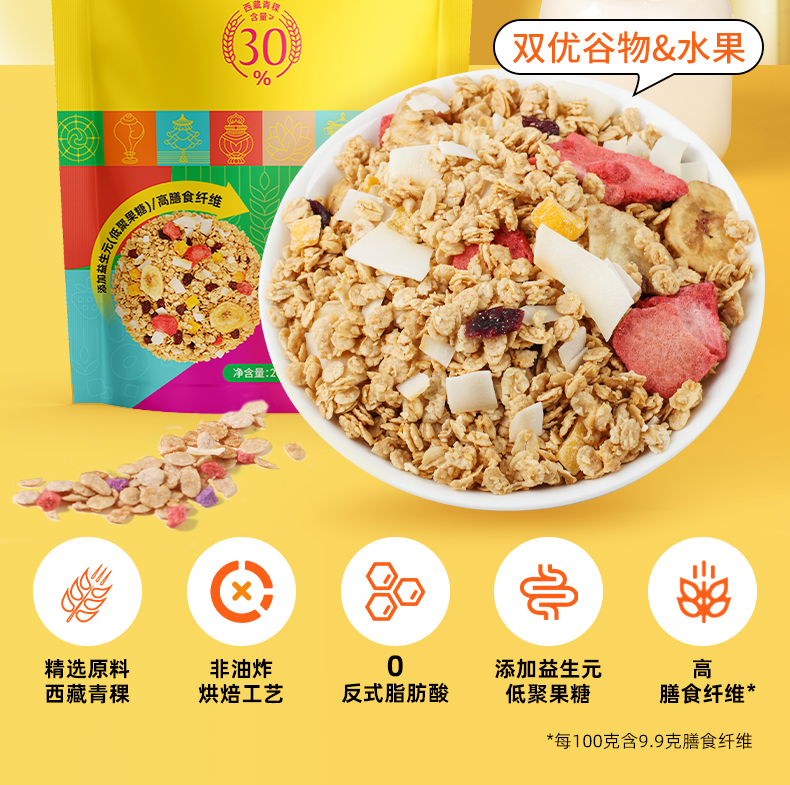 商品名称:藏晶奇正青稞燕麦优果脆200g*2袋