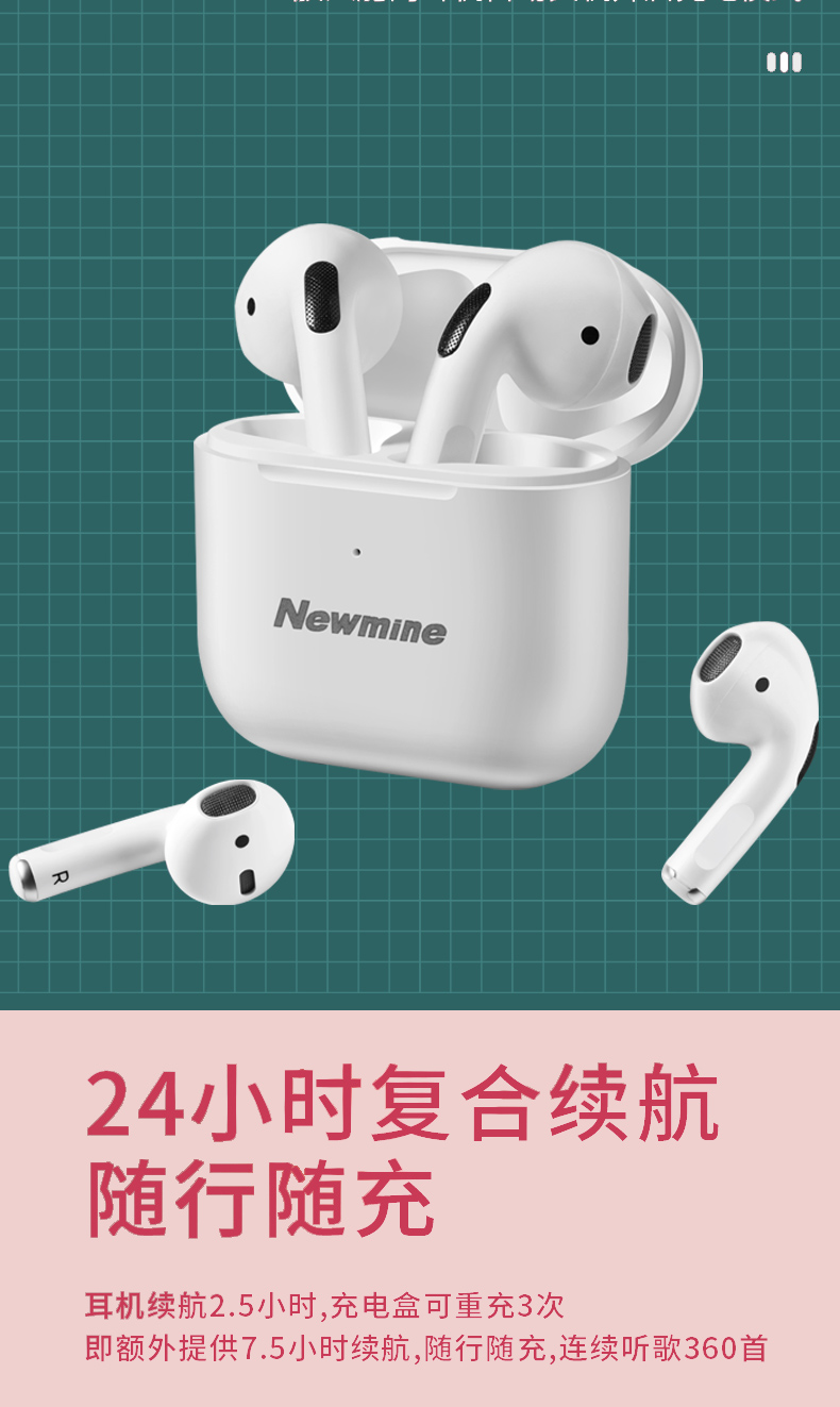 商品名称:Newmine/纽曼无线蓝牙耳机-白色L2