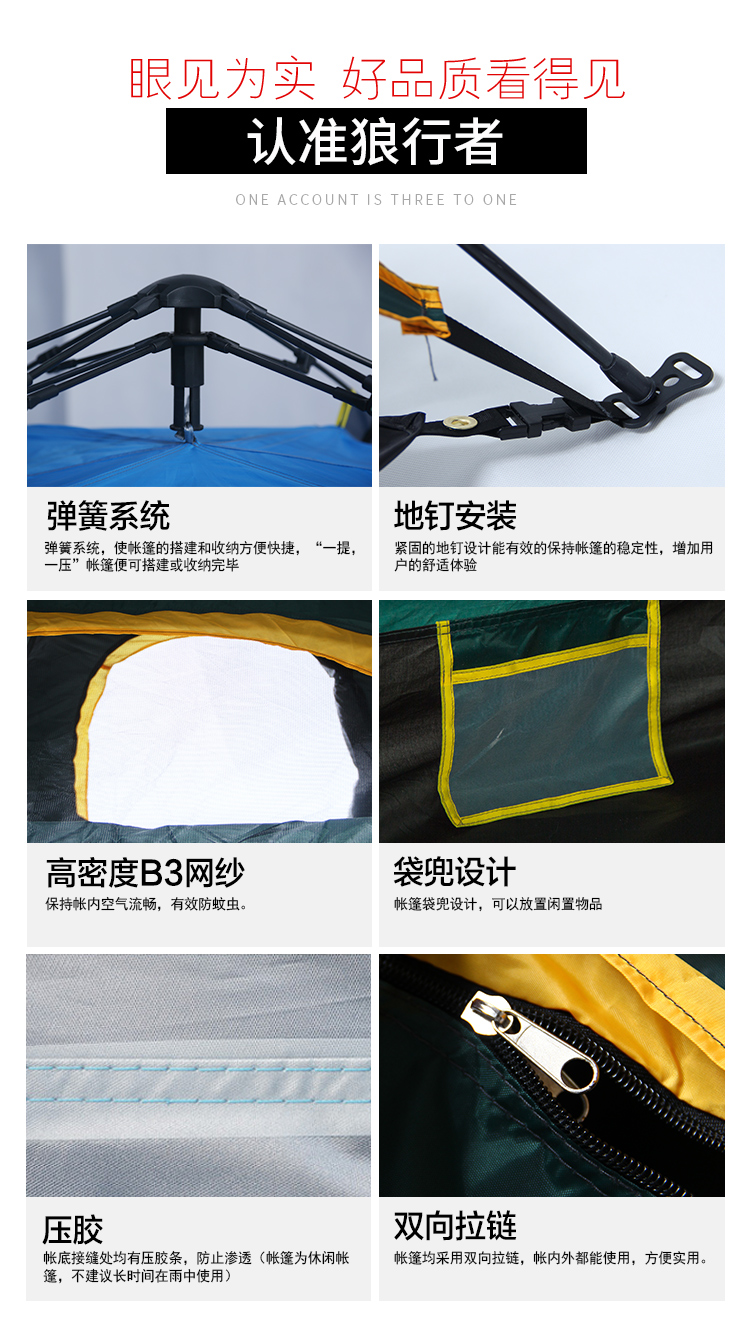 商品名称:WOLF WALKER/狼行者户外全自动帐篷LXZ-1002