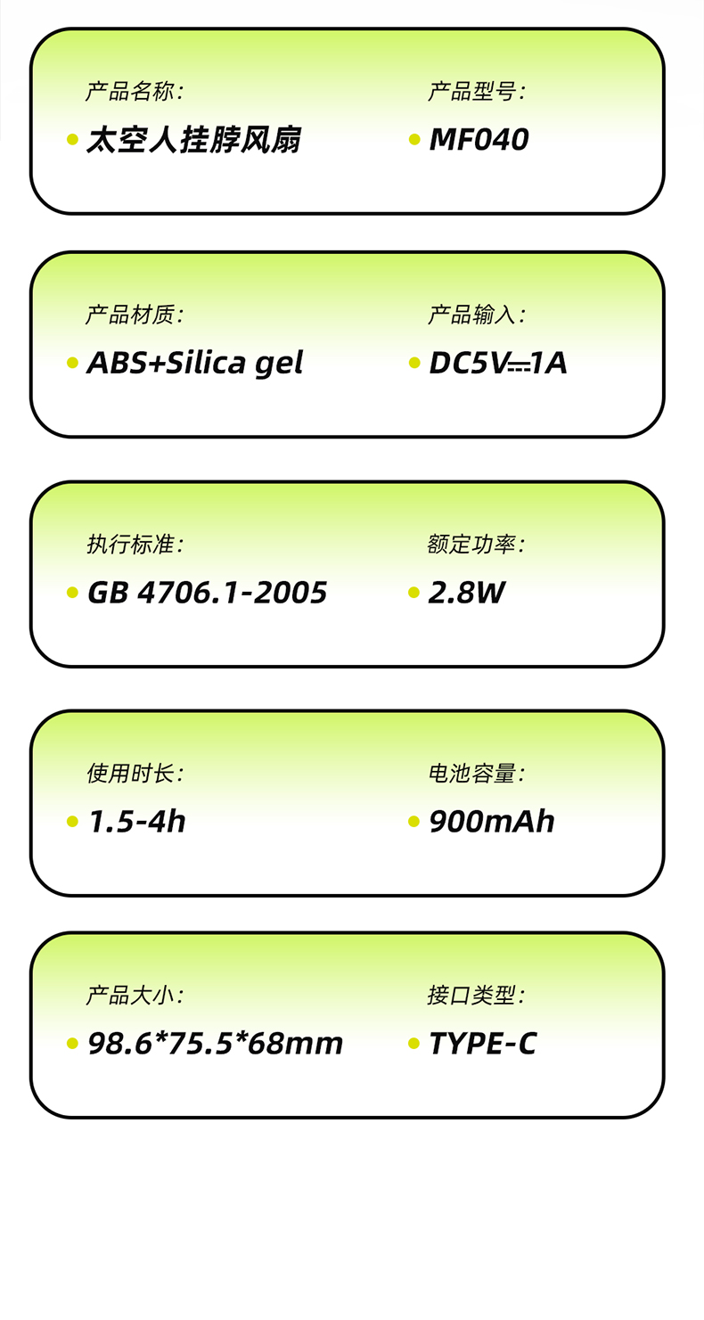 商品名称:SMEBERT/舒曼便携太空人风扇MF040