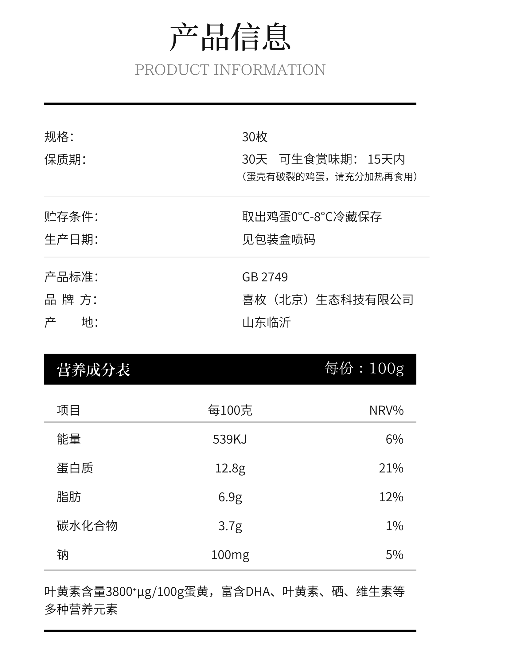 商品名称:【京东/顺丰配送】喜枚叶黄素可生食鲜蛋30枚约1650g